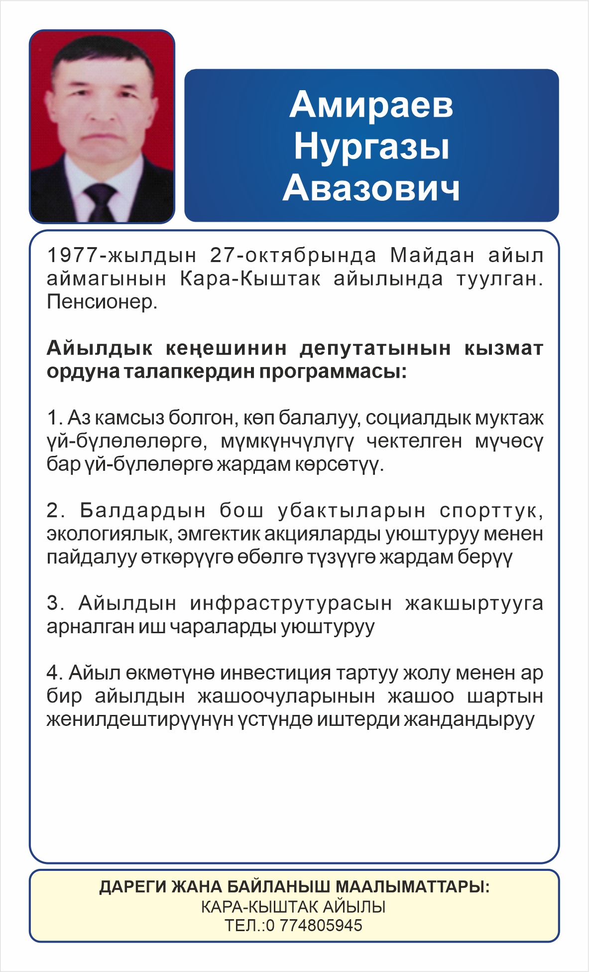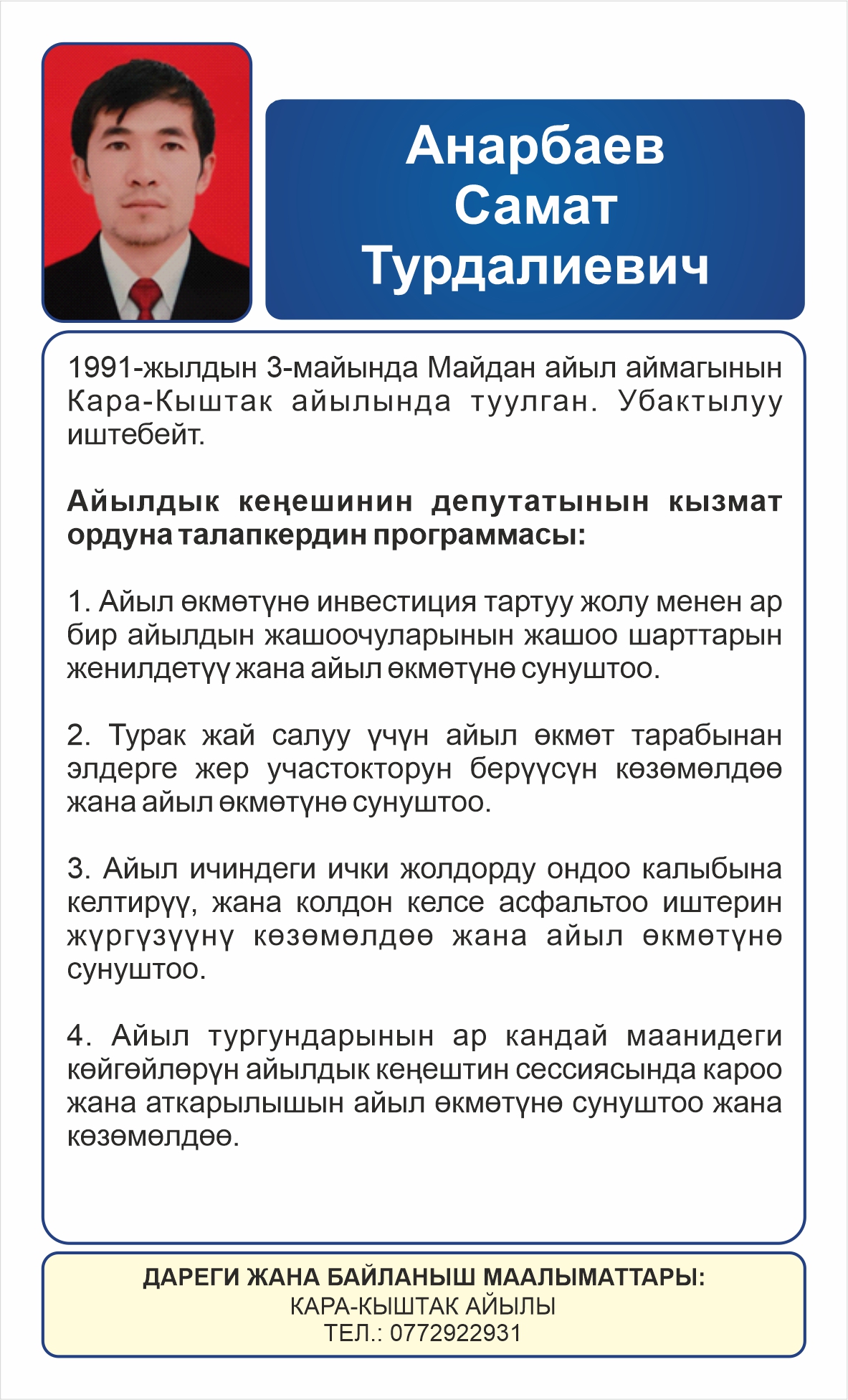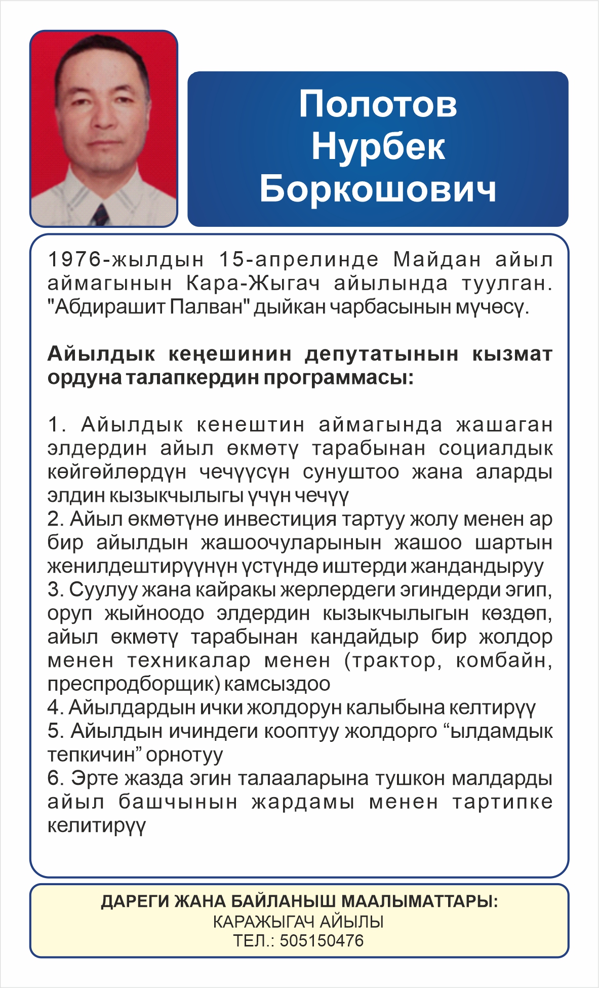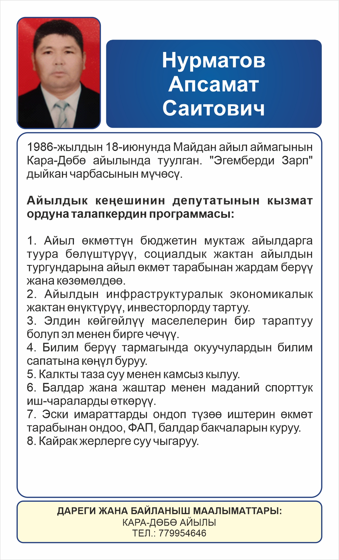 КР БШК: “Талапкер” маалыматтык ресурсунда Майдан айылдык кеңешинин депутаттыгына шайлоого ат салышып жаткан талапкерлер тууралуу маалымат жарыяланды