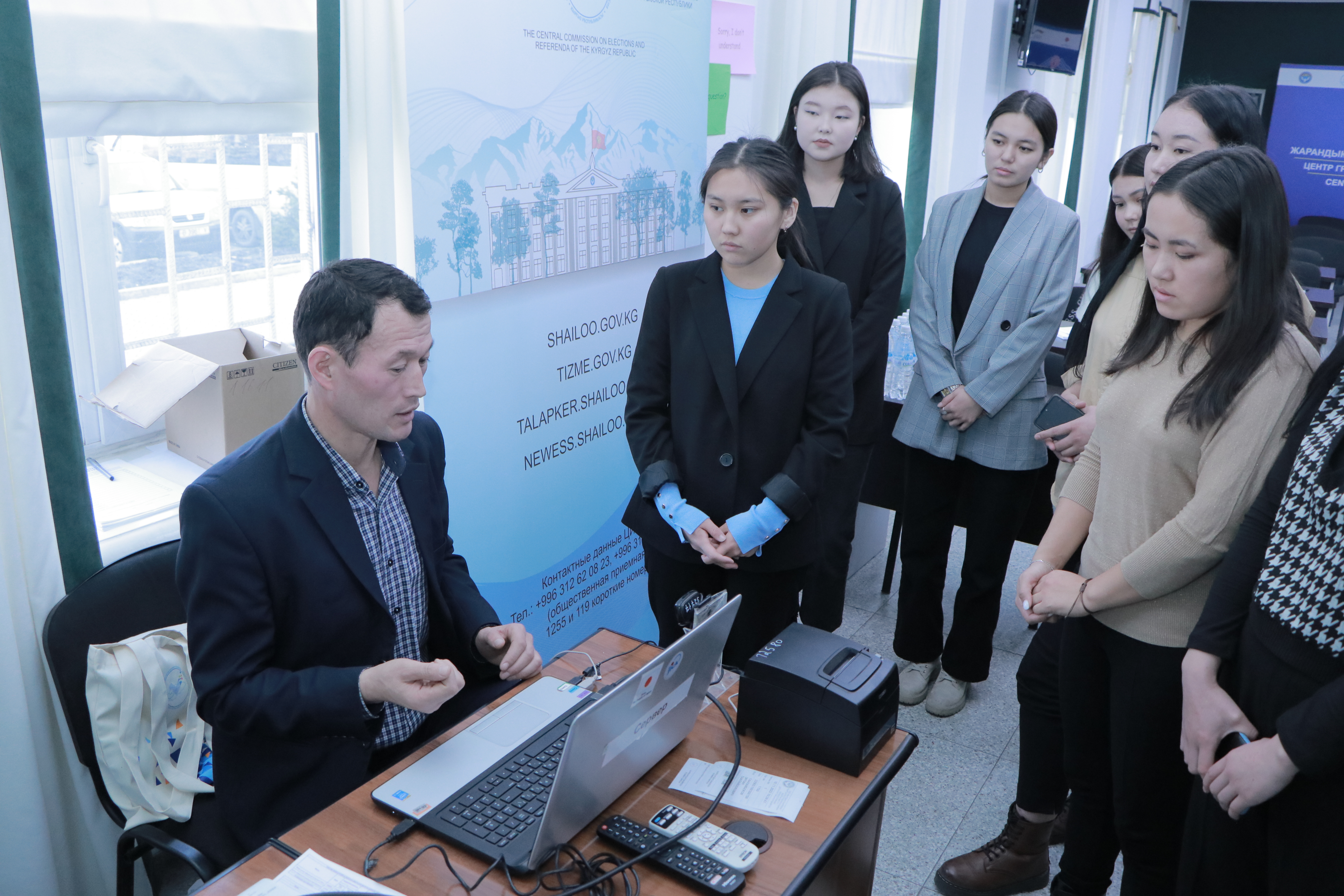 2. Жаштардын бүткүл дүйнөлүк күнүнүн урматына КР БШКнын Жарандык билим берүү борбору Жаш жарандын мектебинде ЖОЖдордун студенттери үчүн “Жаштар жана шайлоо” деген темада дага лекция өткөрдү. Катышуучуларга шайлоонун ролу жана жол-жоболору түшүндүрүлдү, добуштарды автоматтык түрдө эсептөөчү тутумунун иштөөсү көрсөтүлүп, добуш берүүнү моделдөө жүргүзүлдү.