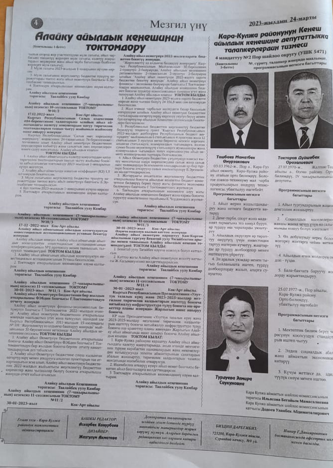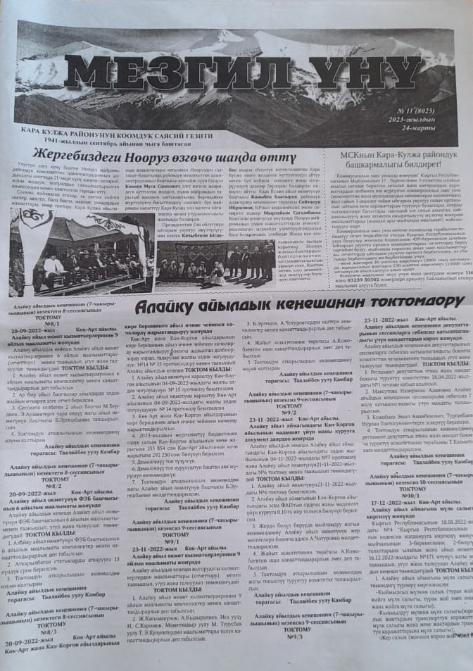 - «Мезгил Үнү» Кара-Кула району - 24.03.2023-ж. №11 (8025)