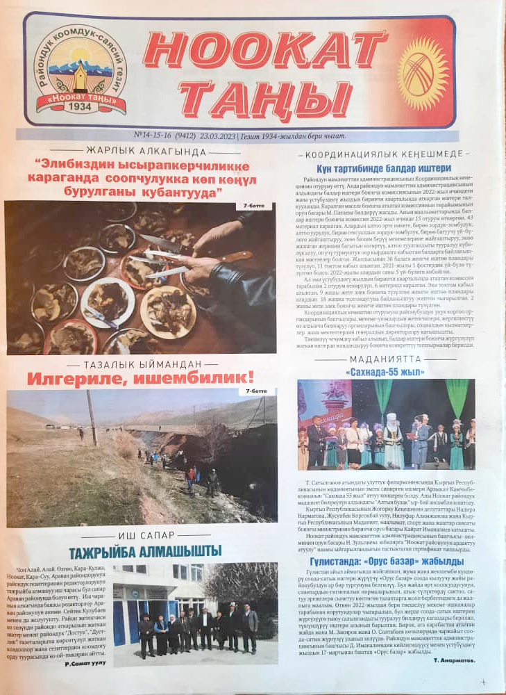 - «Ноокат Таңы» Ноокат району - 23.03.2023-ж. №14-15-16 (9412)