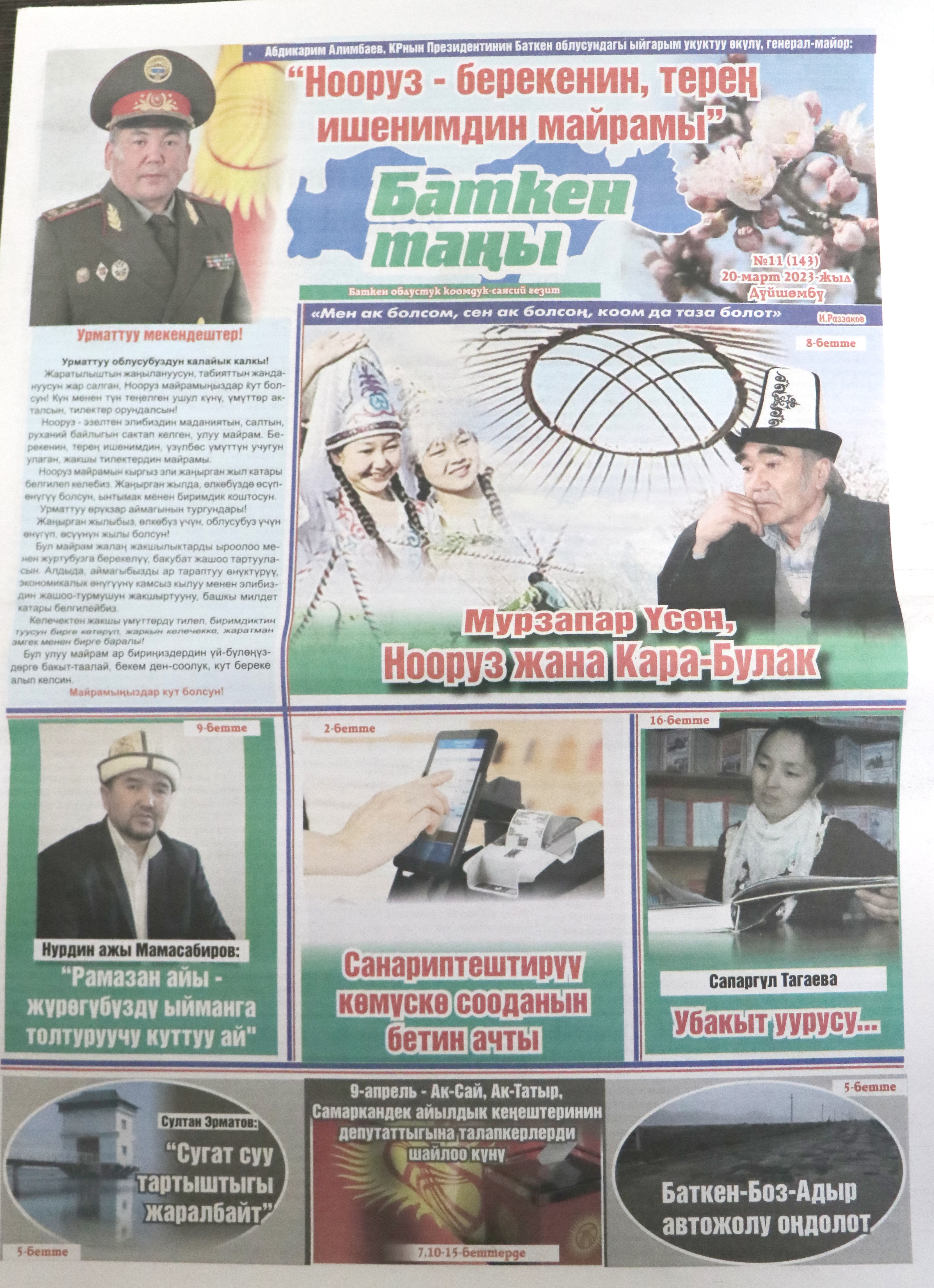 - «Баткен Таңы» Баткен облустук гезити - 20.03.2023-ж. №11 (143)