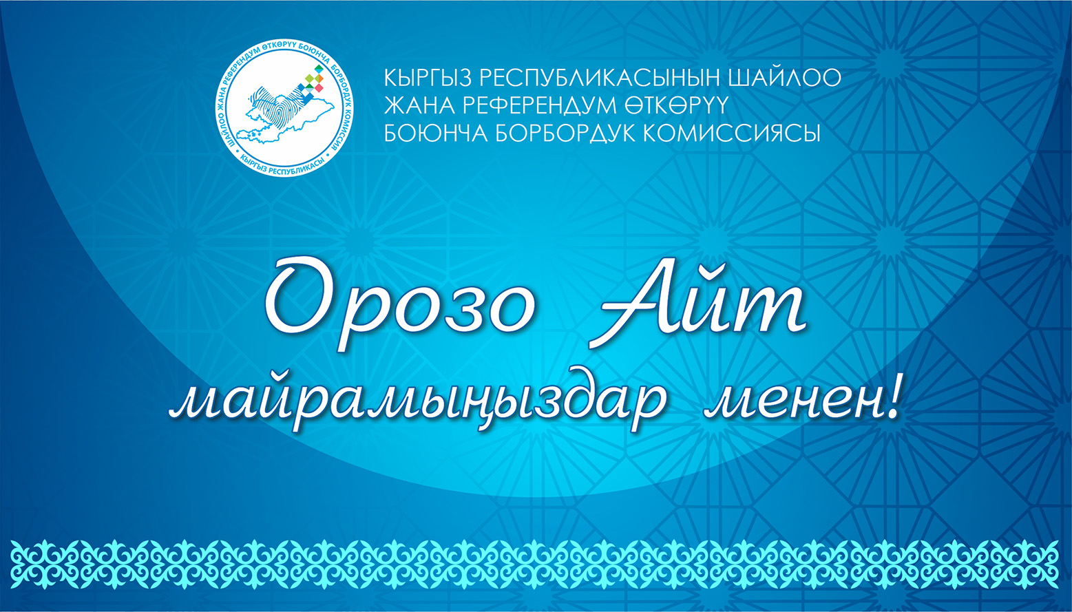 Кыргыз Республикасынын Шайлоо жана референдум өткөрүү боюнча борбордук комиссиясы кыргызстандыктарды Рамазан айынын аякташын белгилеген Орозо айт майрамы менен куттуктайт!