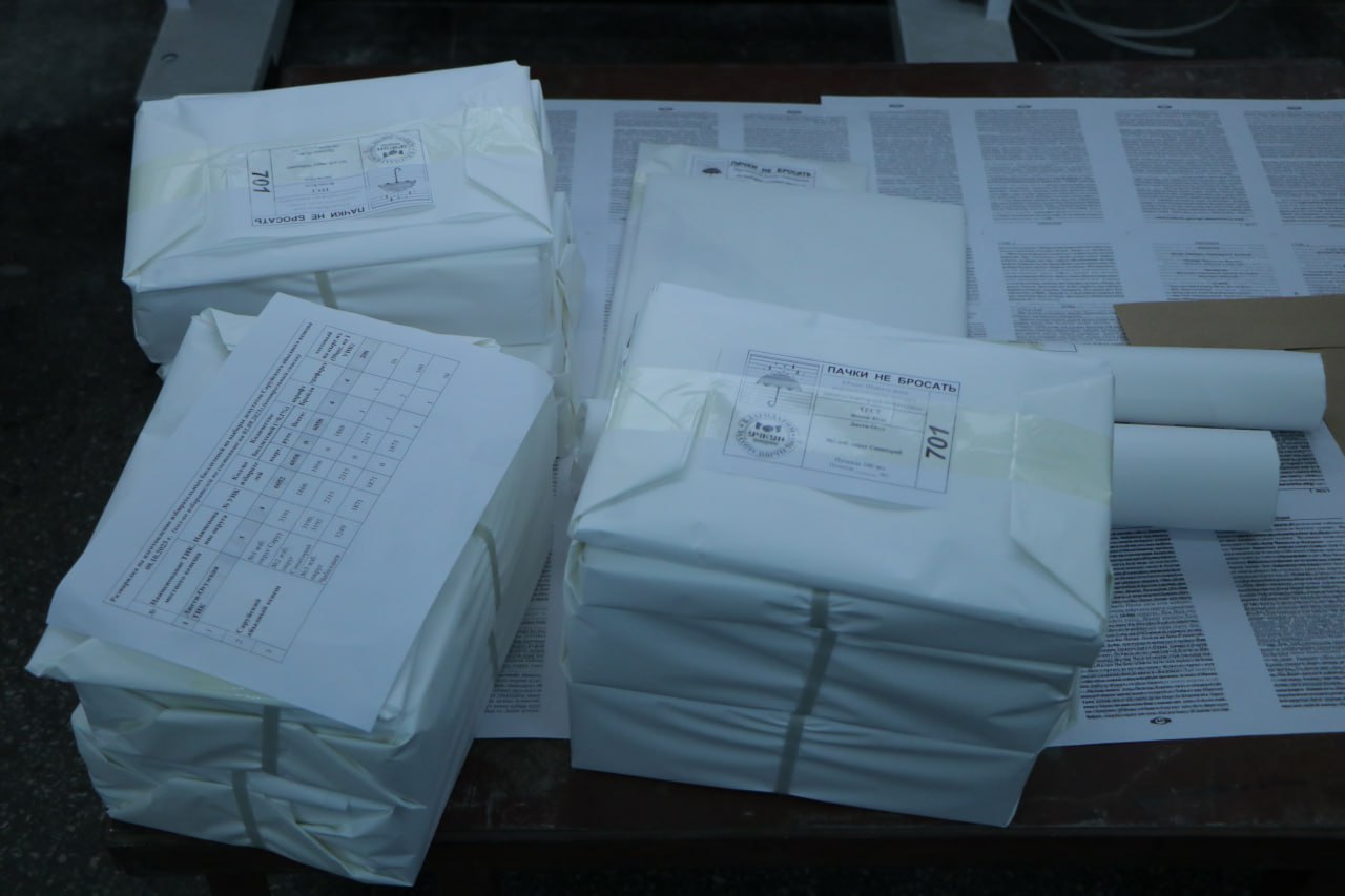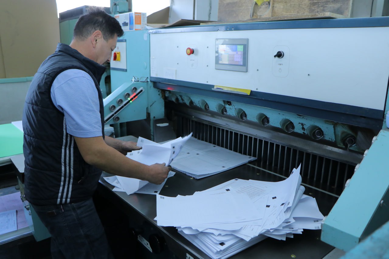 «Учкун» ААКда 2023-жылдын 8-октябрына дайындалган Кыргыз Республикасынын Ысык-Кѳл облусундагы Жети-Өгүз районунун Саруу айылдык кеңешинин депутаттарын шайлоону ѳткѳрүү үчүн шайлоо бюллетендерин даярдоо аяктады.