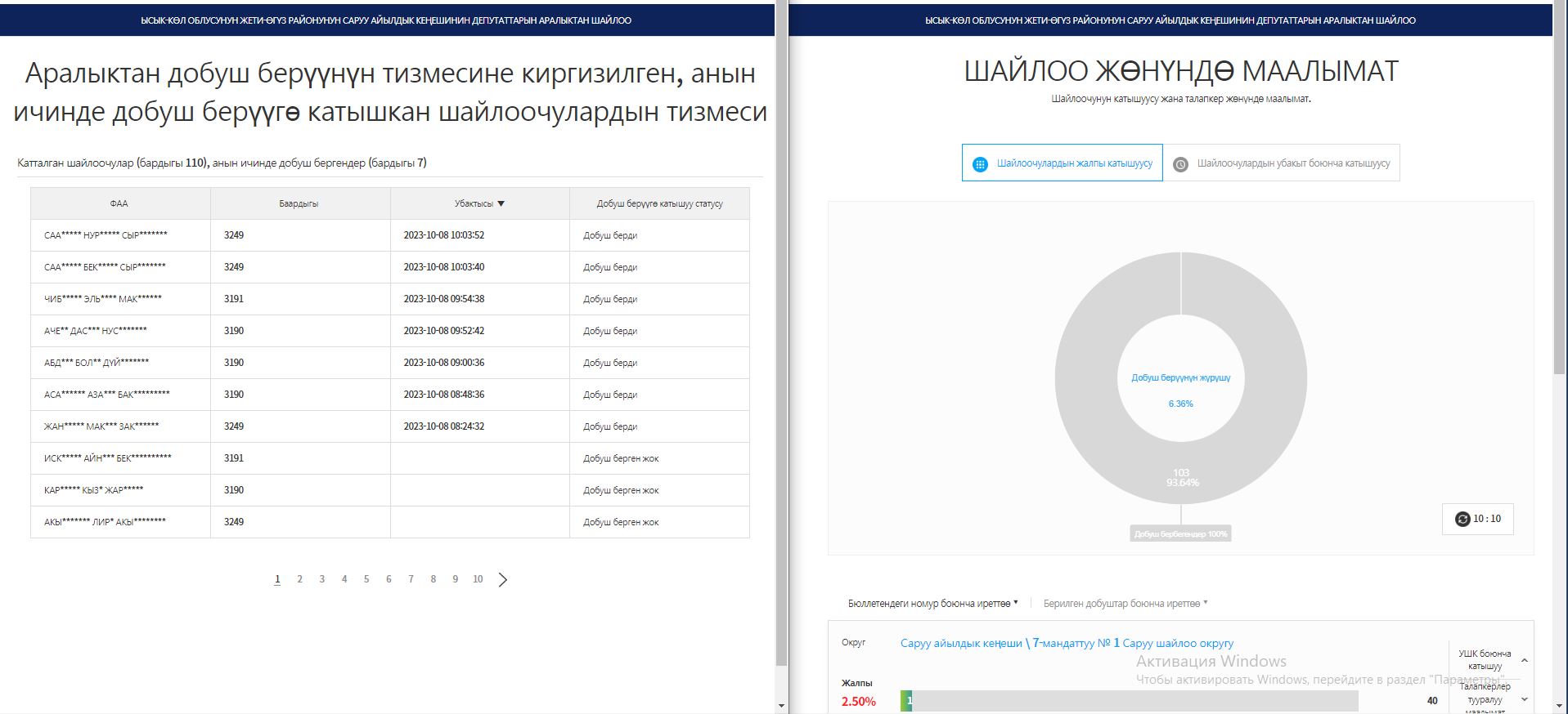 Аралыктан добуш берүүнүн жүрүшү менен https://dobush.shailoo.gov.kg/election/53/result порталынан таанышууга болот.