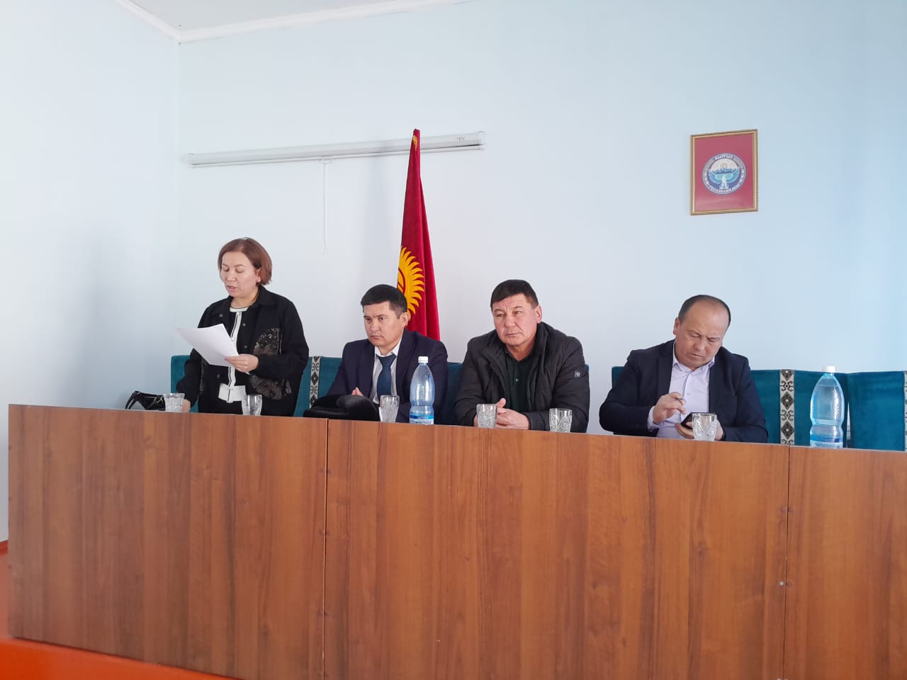 Каныш-Кыя айыл аймагынын кеңешинин сессиясын жашы боюнча эң улуу Ашырбекова Гулнур Дооронбаева депутат ачып, төрагалык кылды.