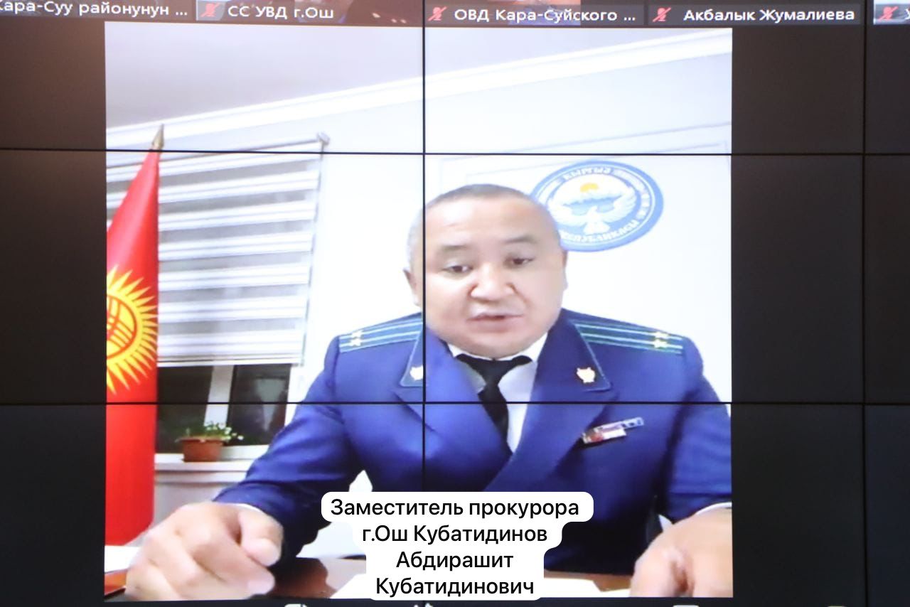 Кара-Суу районунун прокурору Э.Б. Урдалетова прокуратура тарабынан 1 материалдын мыйзамдуулугу жана негиздүүлүгү текшерилгенин билдирди. Калган материалдар боюнча тергѳѳ аракеттерине кѳзѳмѳл жүргүзүлүүдө.