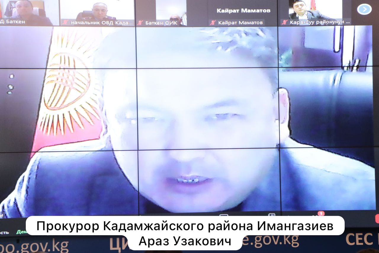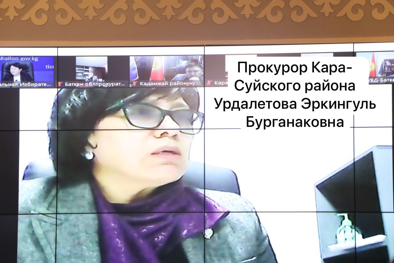 Баткен облусунун прокурору Т.М.Касымбековдун маалыматы угулду. Прокуратура тергөө органдары тарабынан кабыл алынган бардык 5 чечимдин мыйзамдуулугу жана негиздүүлүгү текшерилип, шайлоонун мыйзамдуулугун камсыз кылуу боюнча да көзөмөл жүргүзүп жатканын билдирди.