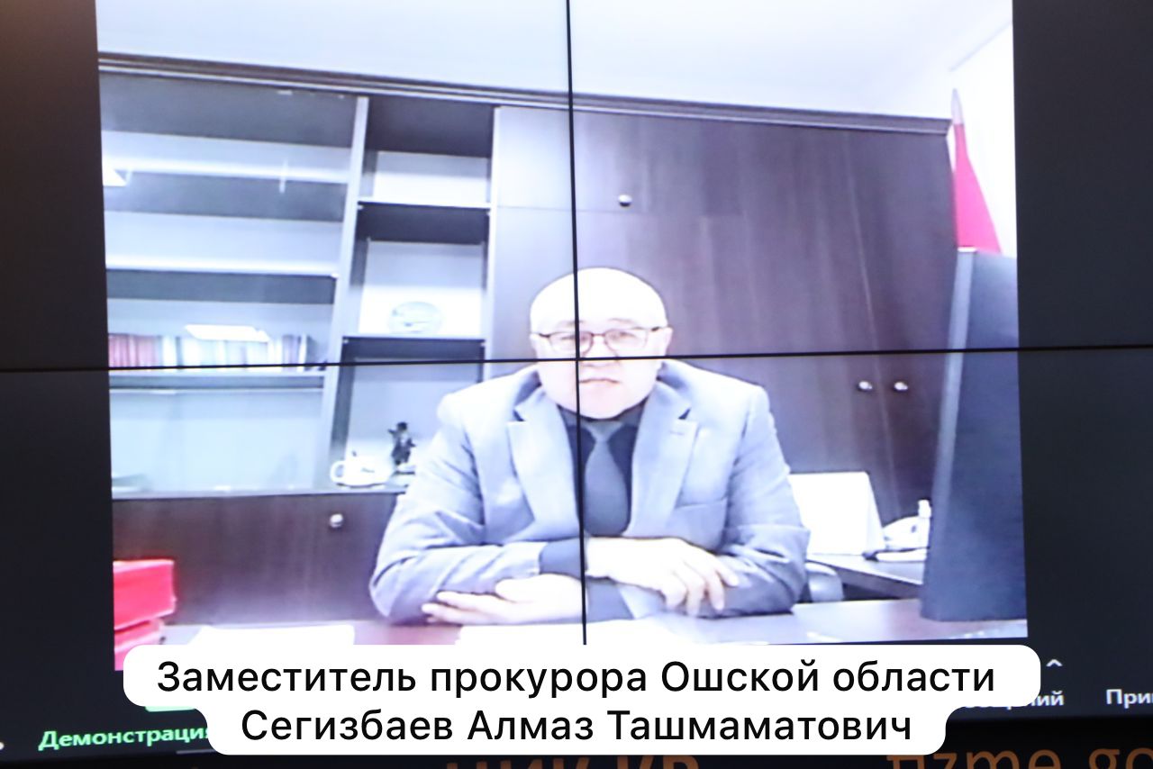 Кыргыз Республикасынын Башкы прокуратурасынан: Баткен облусунун прокурору Касымбеков Таалайбек Макенович, Кадамжай районунун прокурору Имангазиев Араз Узакович, Баткен районунун прокурору Курманакунов Нурбек Абдыкадырович, Баткен райондук прокуратурасынын бөлүм башчысы Бапов Салимбек Сайдакматович, Ош шаарынын прокурорунун орун басары Кубатидинов Абдирашит Кубатидинович, Ош шаардык прокуратурасынын бөлүм башчысы Насипов Канат Жумалиевич, Ош облусунун прокурорунун орун басары Сегизбаев Адмаз Ташмаматович, Кара-Суу районунун прокурору Урдалетова Эркингүл Бурганаковна, Кара-Суу районунун прокурорунун орун басары Чыбышев Сыргак Токтобекович катышты.