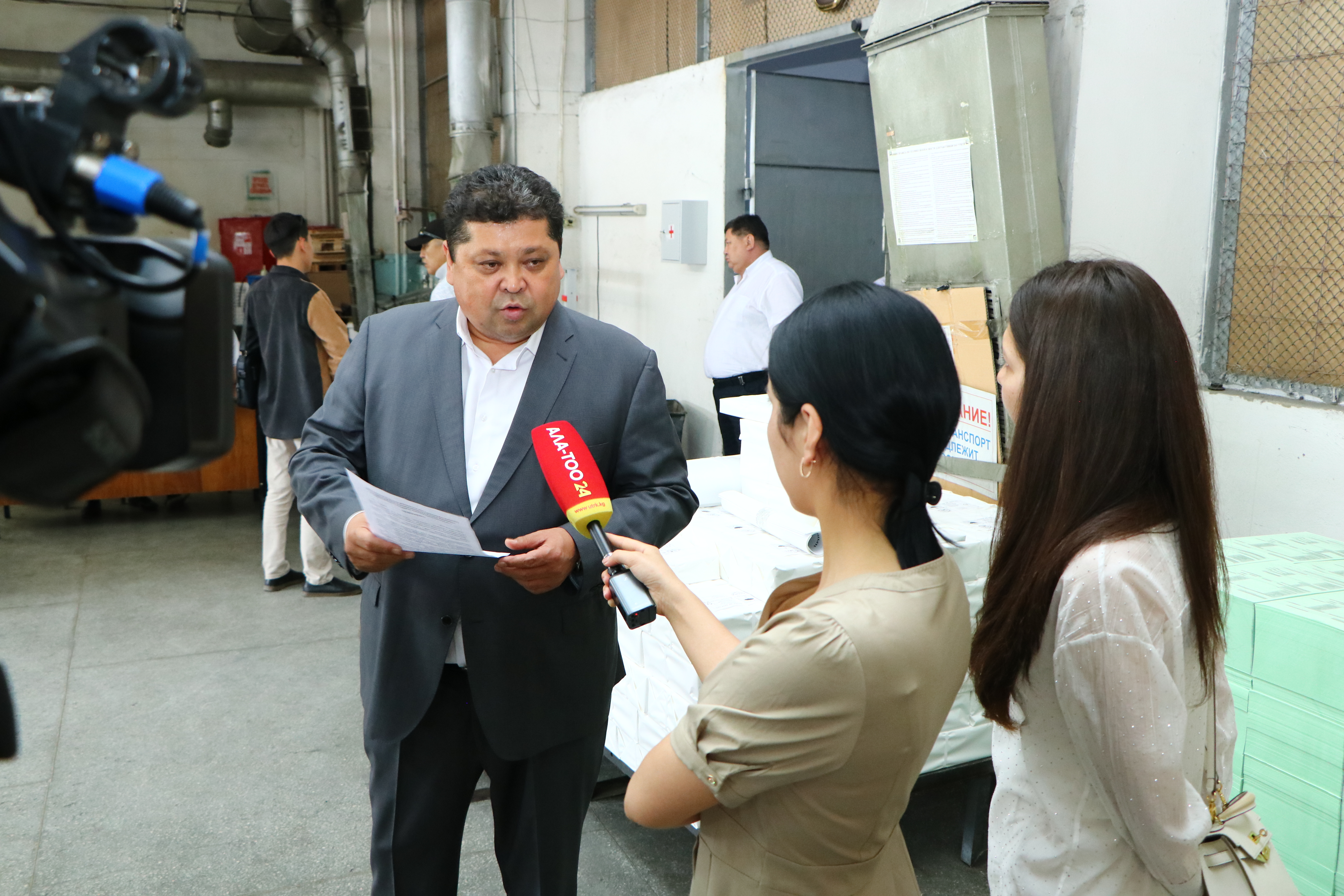 КР БШКнын башчысынын орун басары Т.Шайназаров ѳзүнүн сѳзүндѳ бюллетендерди сапаттуу жана ѳз учурунда даярдагандыгы үчүн «Учкун» ААКга ыраазычылык билдирди, мыйзамга ылайык добуш берүү күнүнѳ чейин 5 күн мурда басып чыгарылууга тийиш. Бюллетендер үч округдун шайлоо участкаларына жеткирилет.