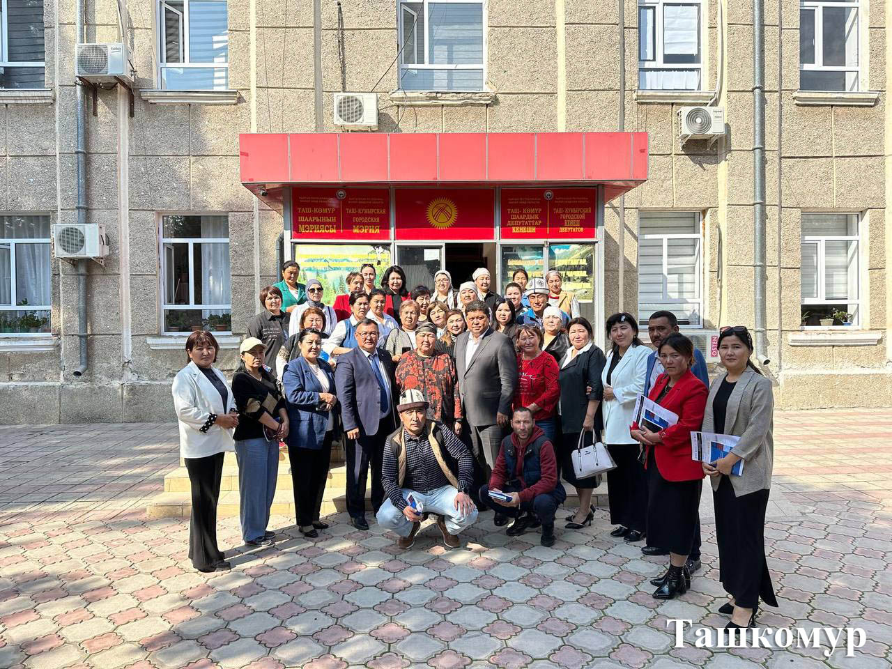 - БШКнын төрагасынын орун басары Тынчтык Шайназаров жана БШКнын мүчөсү Айдана Жупуева Таш-Көмүр шаарында Жалал-Абад облусунун Кербен, Майлы-Суу, Кара-Көл, Токтогул шаарларынын, Ала-Бука, Аксы райондорунун аялдары менен жолугушту.