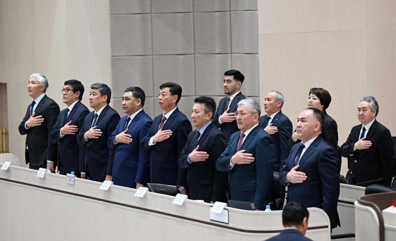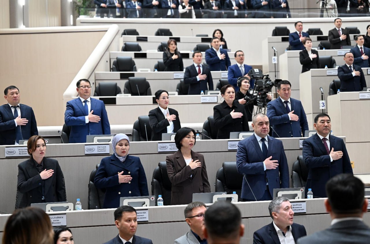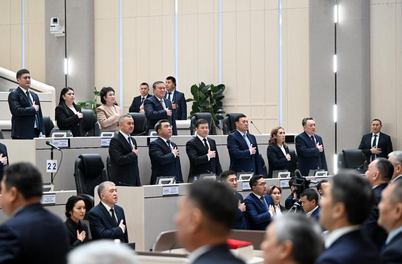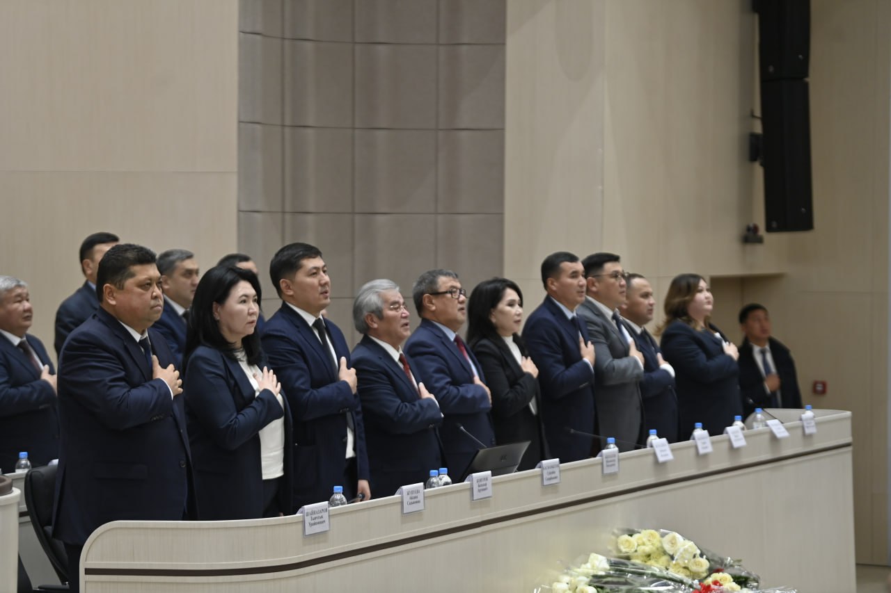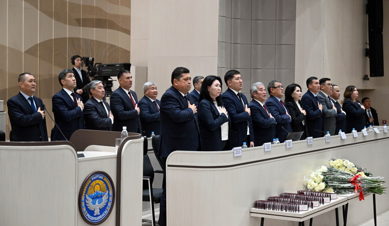 Салтанаттуу иш-чарада депутаттар Кыргыз Республикасынын Президенти Садыр Жапаровдун катышуусунда ант беришти.