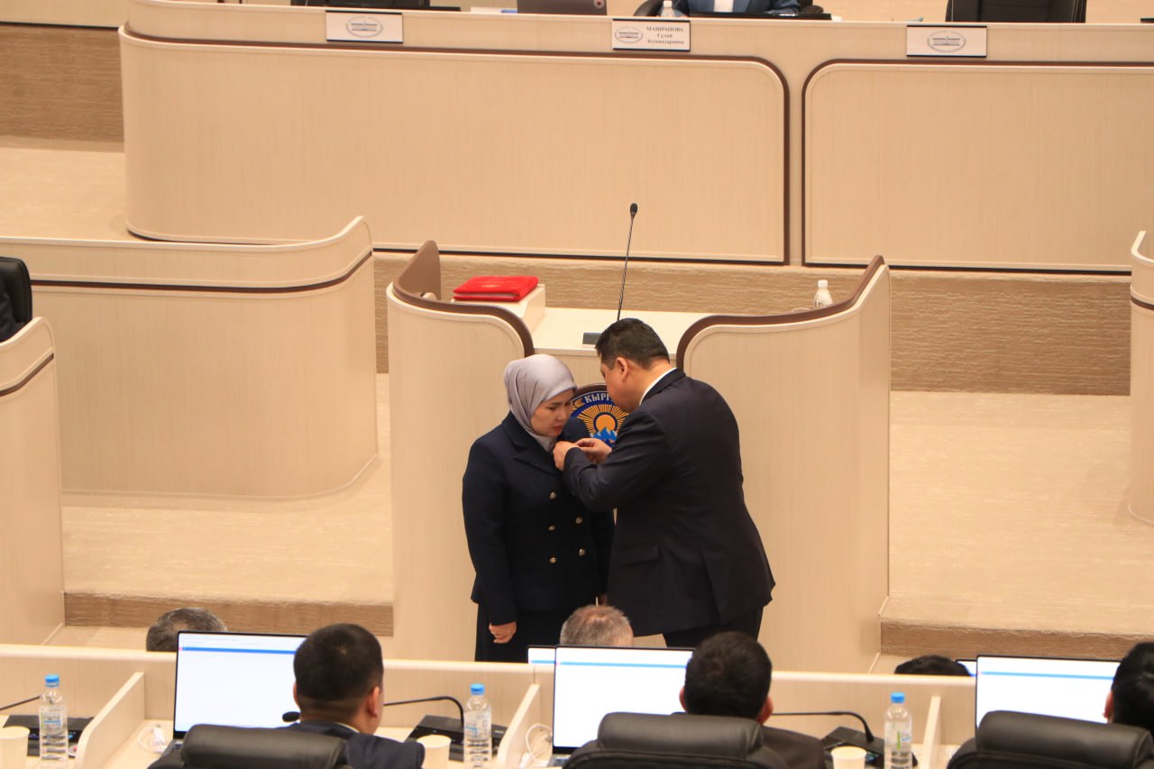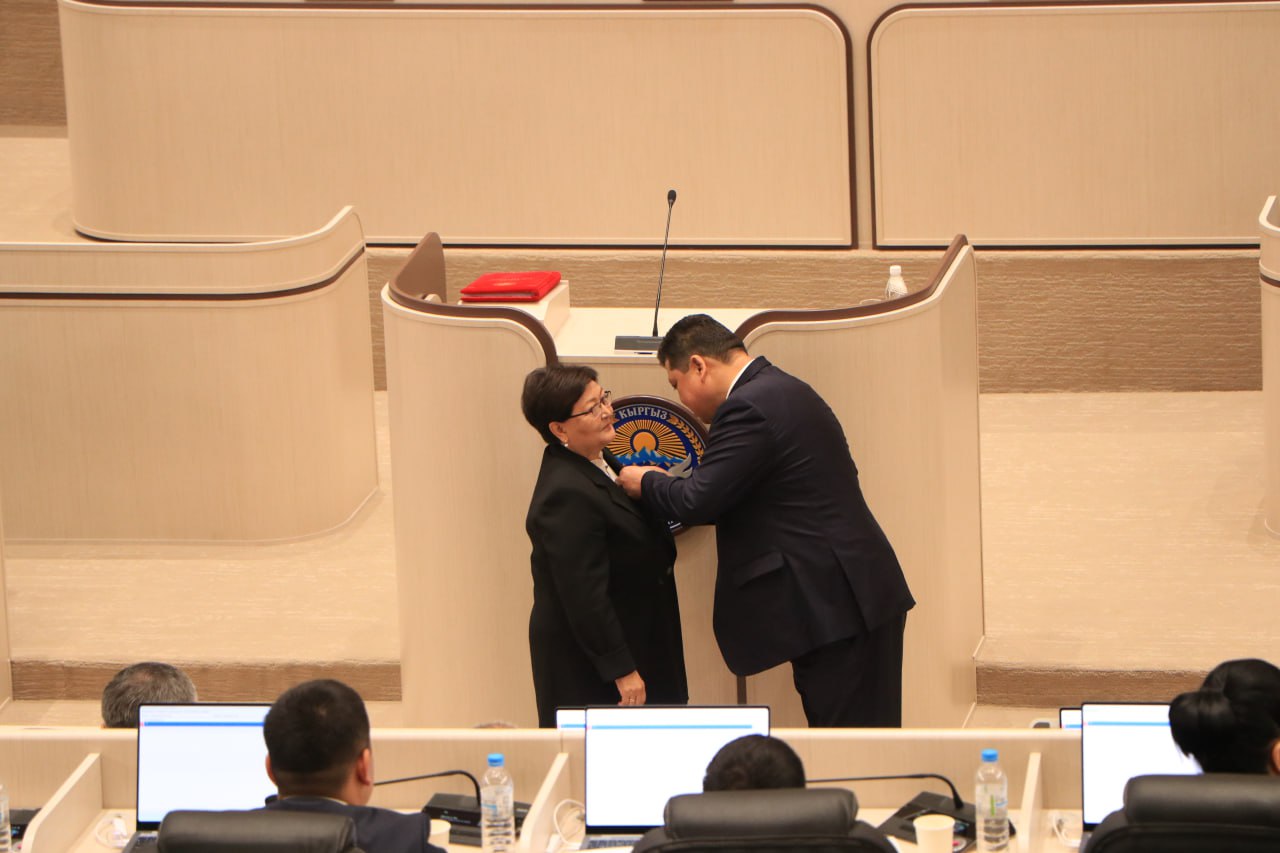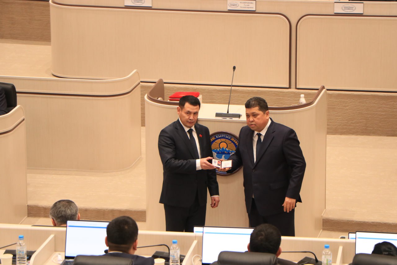 КР Жогорку Кеңешинин VIII чакырылышынын жаңы шайланган депутаттарына ырастама жана төш белги тапшырылды