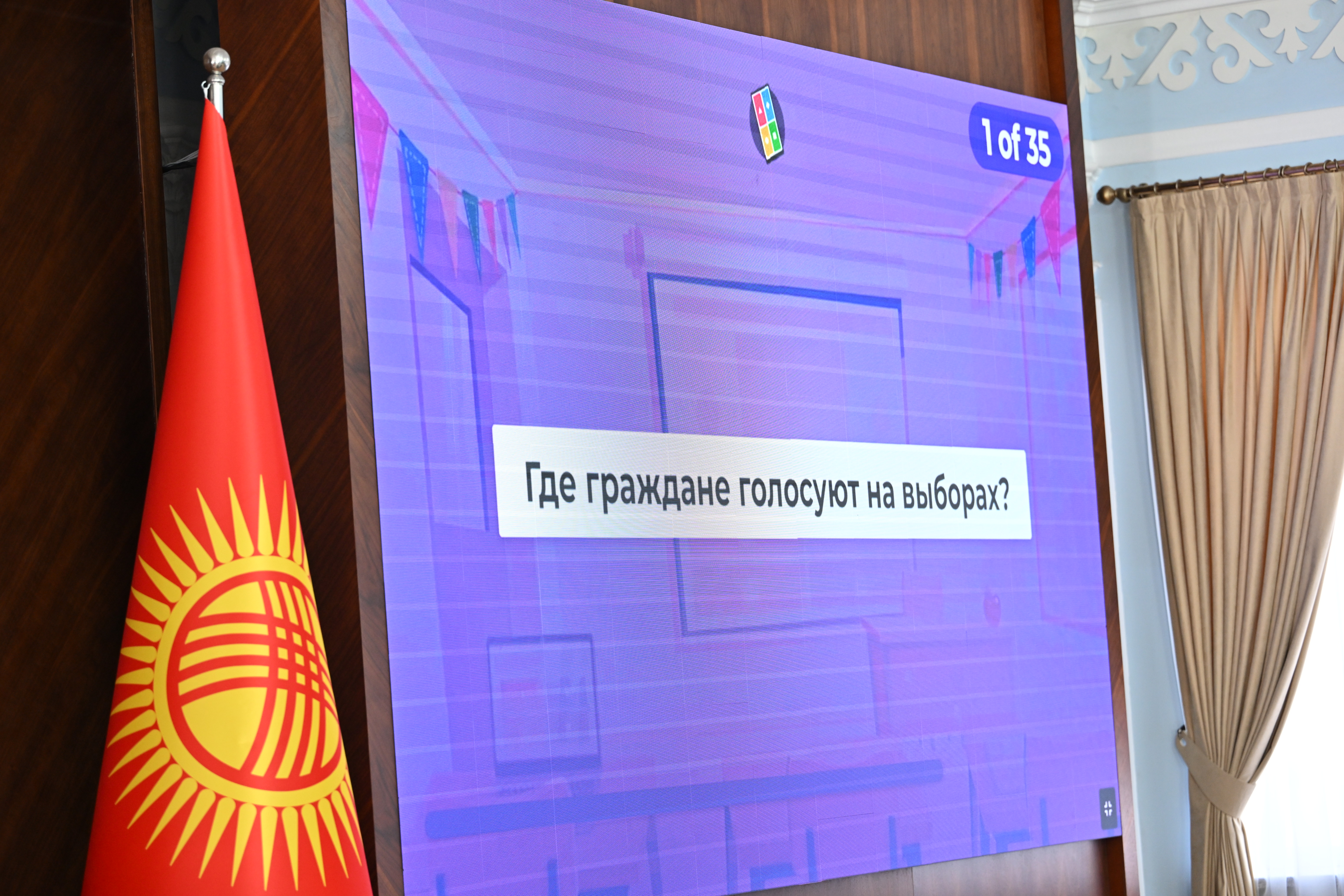 Алынган билимдерди бекемдөө максатында интерактивдүү оюн-викторина өткөрүлүп, анда катышуучулар шайлоо процесси боюнча өз билимдерин оюн форматында текшерип, талкууланган темаларга болгон жогорку кызыгуусун көрсөтүштү.