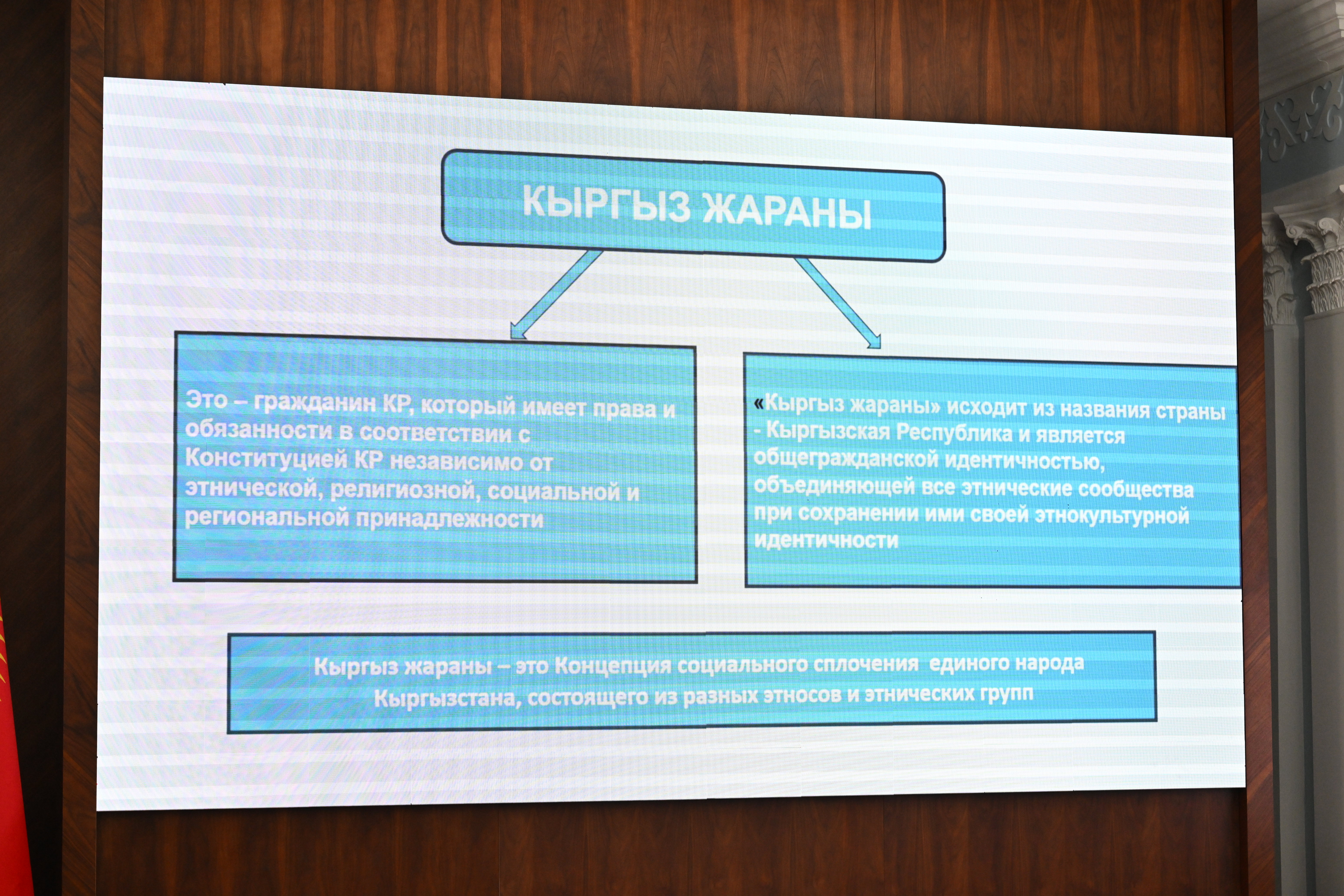 ЖББШТБнын эксперти Чолпон Бапиева «Кыргыз жаранынын баалуулуктары жана жаштардын жарандык иденттүүлүктү өнүктүрүүдөгү ролу» темасында презентация жасап, Кыргыз жаранынын негизги принциптери жана баалуулуктары тууралуу видеоматериалды көрсөттү.