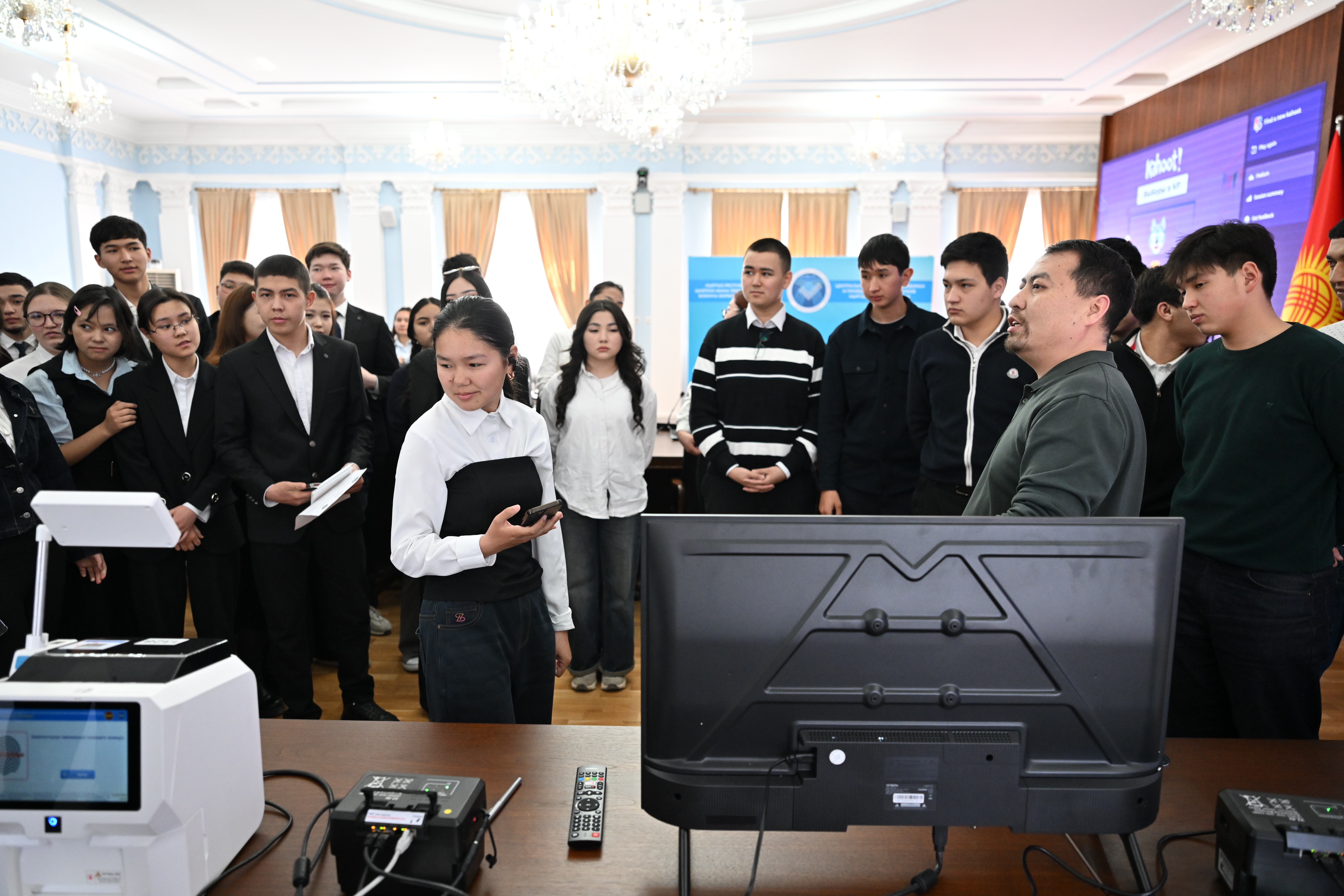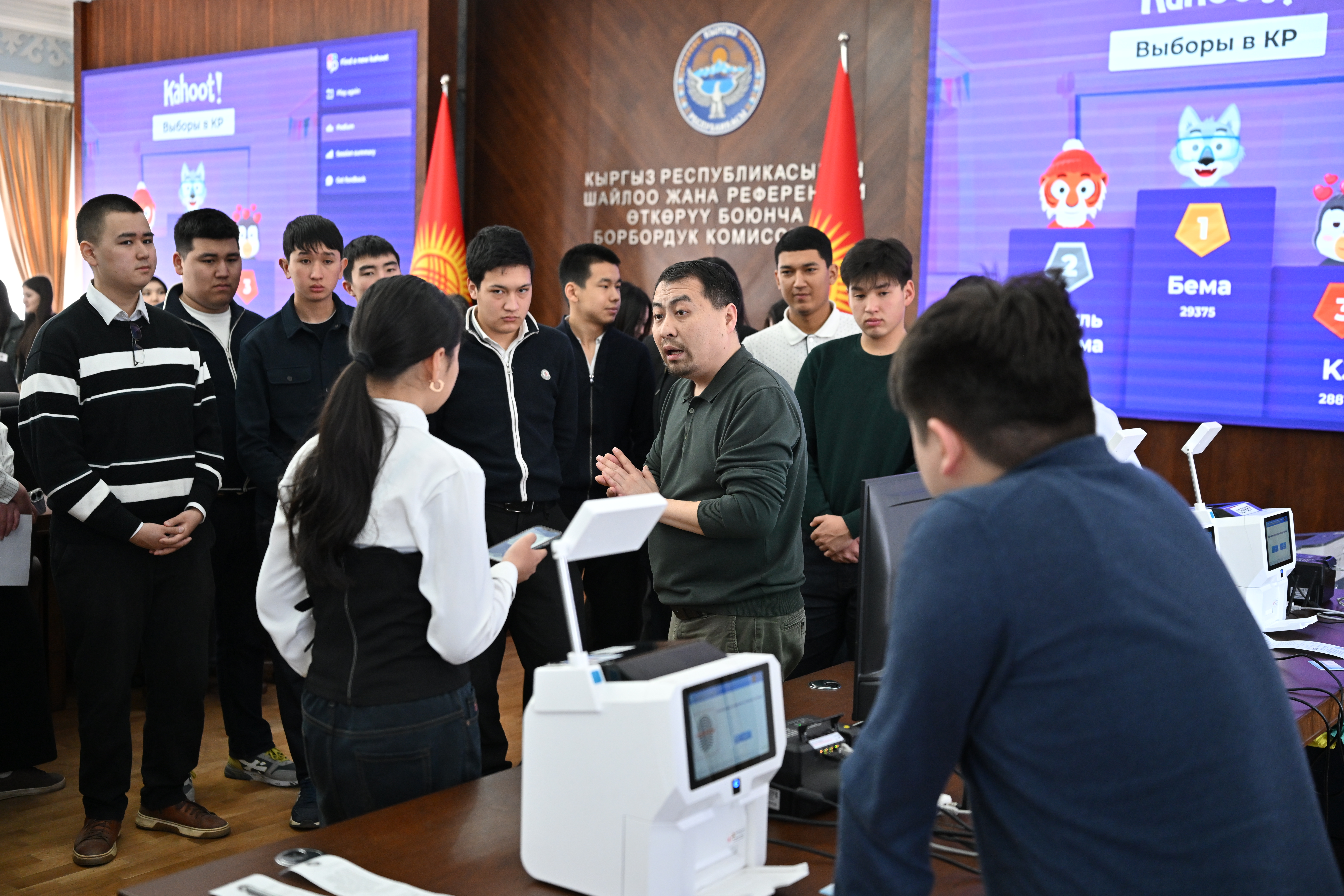 Ошондой эле студенттерге Кыргыз Республикасында шайлоону уюштуруу жана өткөрүүдө колдонулган шайлоо жабдууларынын иши көрсөтүлдү.