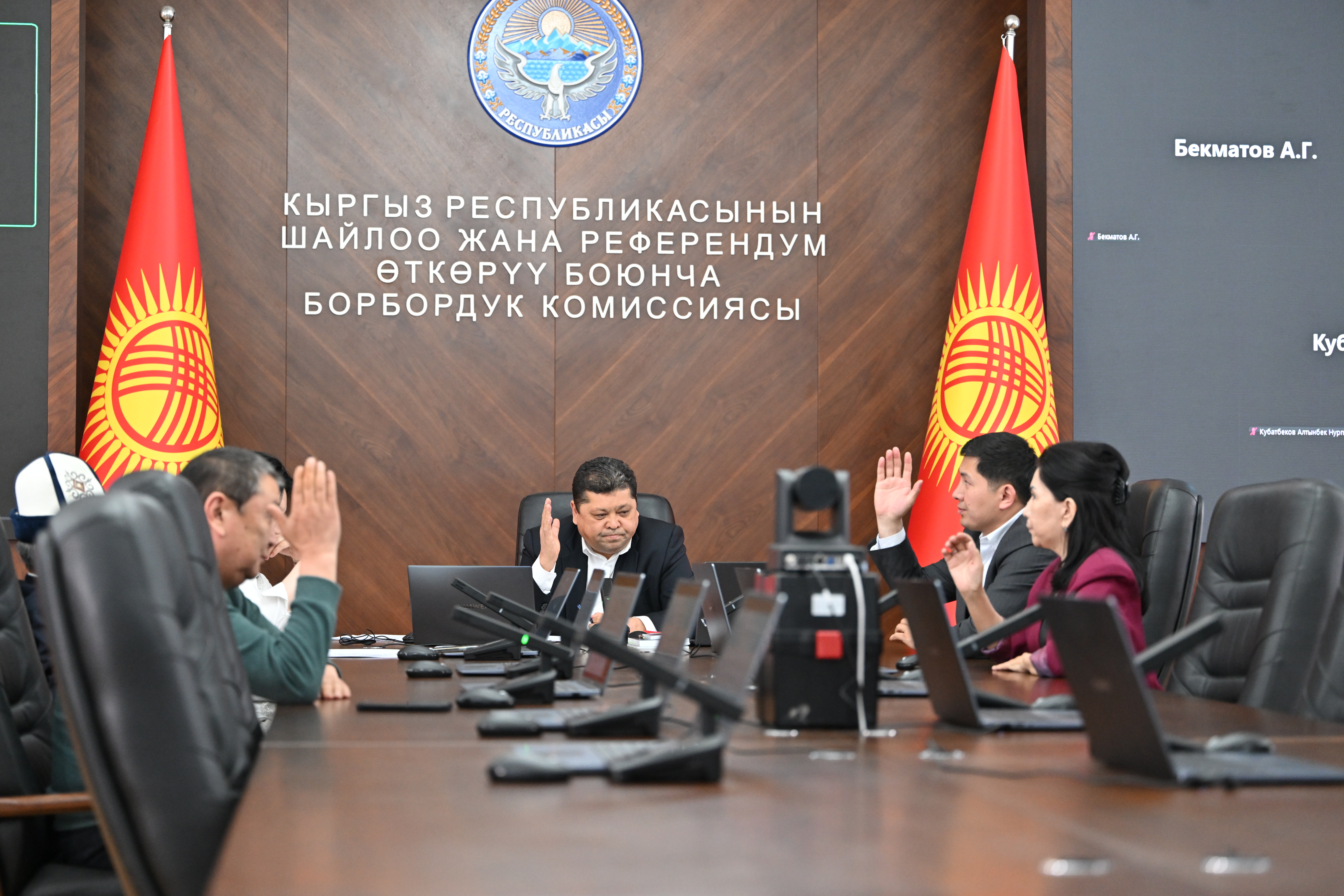 Кыргыз Республикасынын Борбордук шайлоо комиссиясы бүгүн, 31-марттагы жыйынында “Укук бузуулардын бирдиктүү реестри” автоматташтырылган маалыматтык тутумунда катталган укук бузуулар боюнча чараларды көрүү жөнүндө чечим кабыл алды.