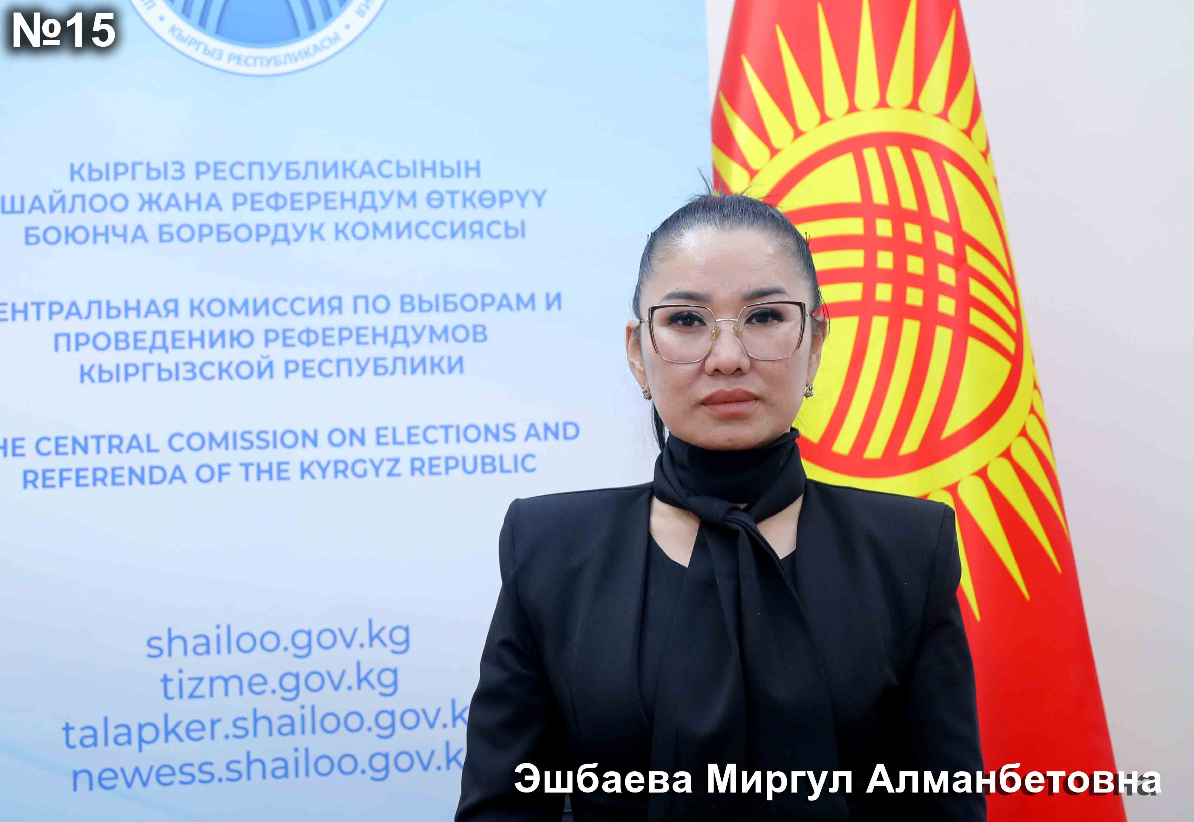 - Эшбаева Миргул Алманбетовна 28.05.1983 Жогорку Кеңештин консультанты