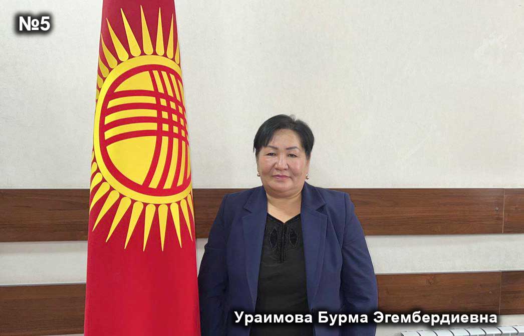 - Ураимова Бурма Эгембердиевна 23.10.1971 Ош шаарынын Кызыл-Кыштак айыл аймагынын соц.кызматкери