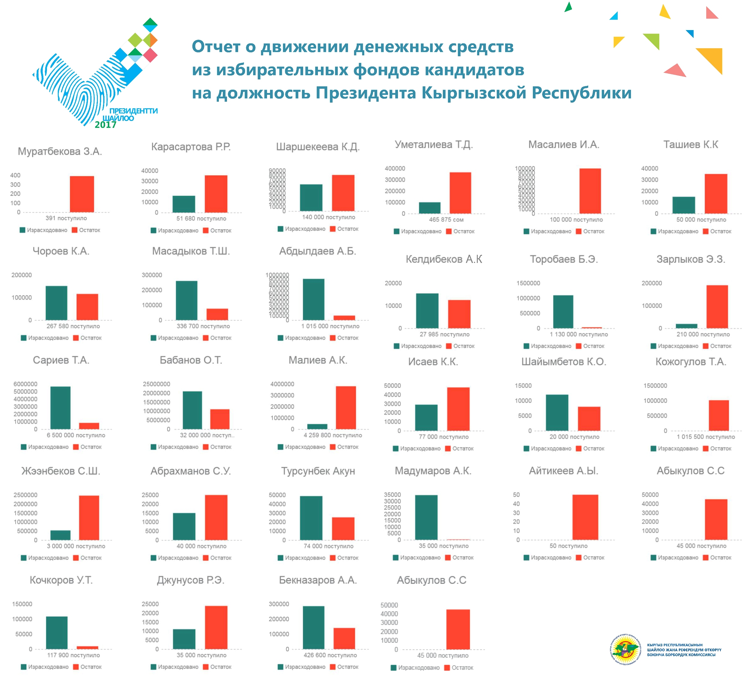 Отчет о движении денежных средств из избирательных фондов кандидатов на должность Президента Кыргызской Республики (Инфографика)