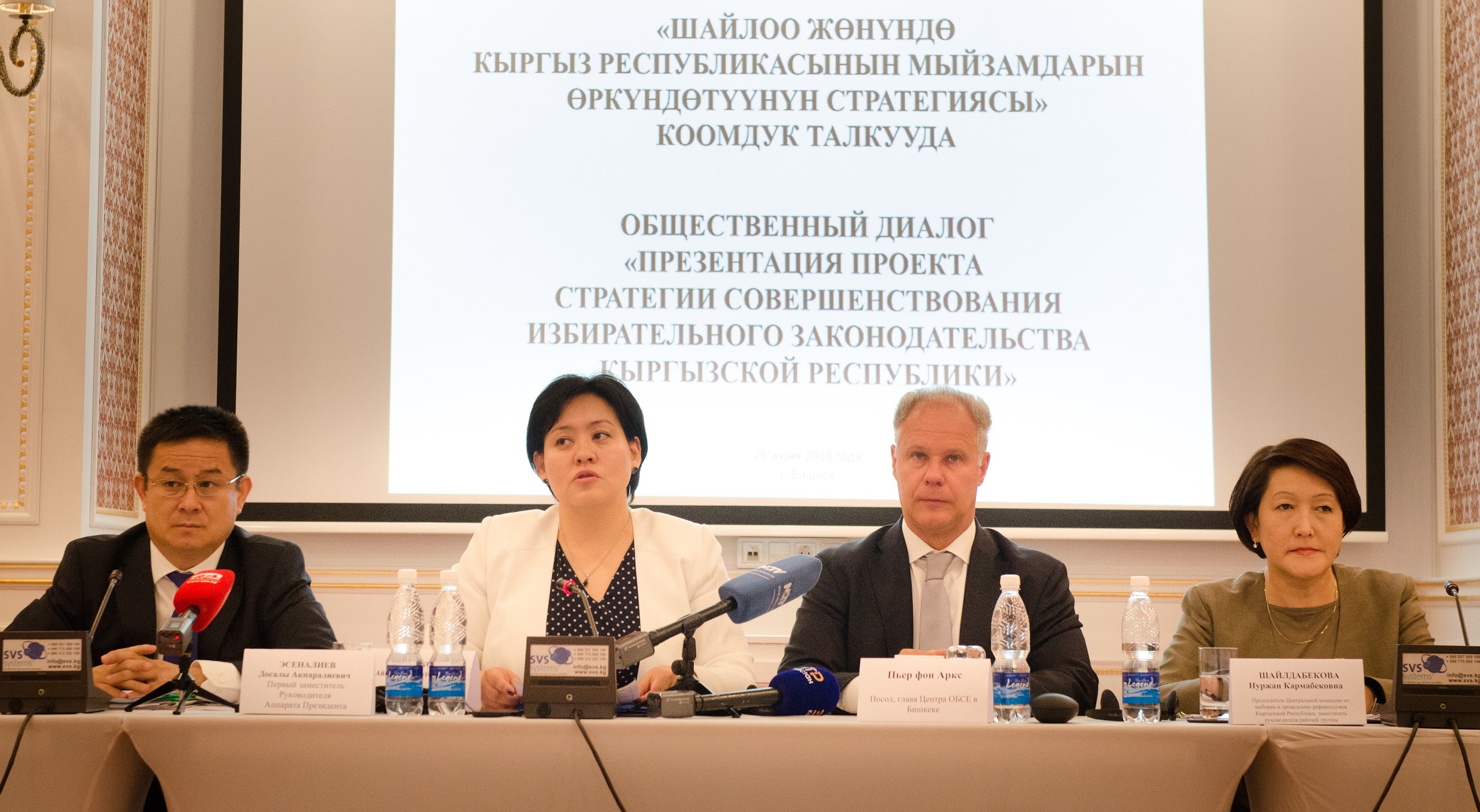 26 июня 2018 года в г.Бишкек вынесена на общественное обсуждение финальная версия проекта Стратегии совершенствования законодательства Кыргызской Республики о выборах на 2018-2020гг.