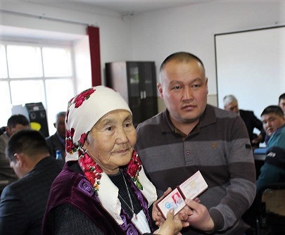 На первой сессии депутатам Чаекского айылного кенеша Жумгальского района Нарынской области были вручены нагрудные знаки и удостоверения установленного образца