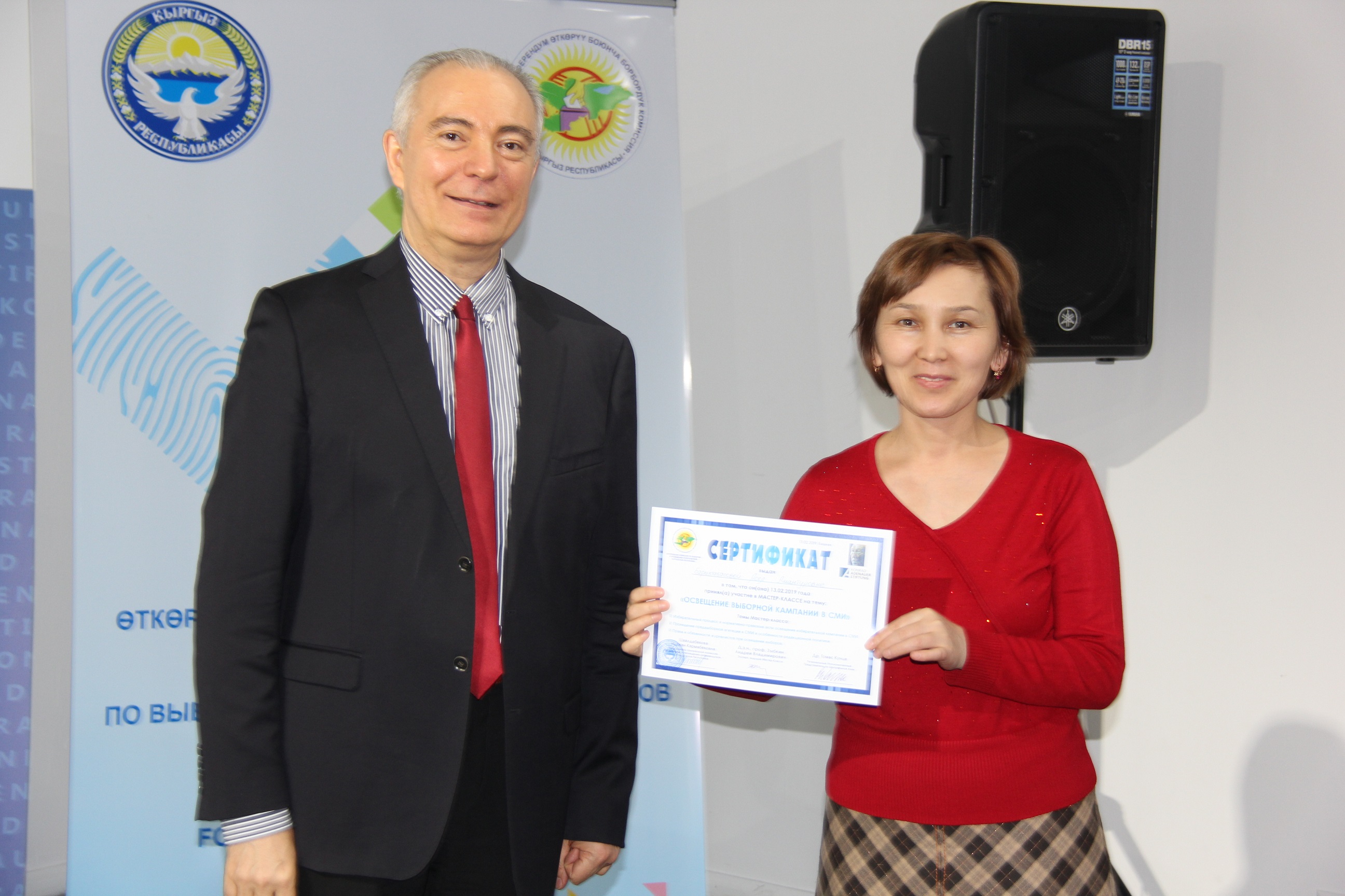 Об основных изменениях законодательства в части участия СМИ в выборном процессе (в рамках законопроектов, внесенных в ЖК КР, разработанных в реализации Стратегии совершенствования законодательства о выборах КР на 2018-2020 гг.) и о важной роли СМИ в освещении выборов участникам мастер-класса рассказала председатель ЦИК КР Н.Шайлдабекова. Глава ЦИК поблагодарила Фонд им.Конрада Аденауэра в лице доктора Т.Кунце за оказание содействия в проведении данного мероприятия, направленного на повышение информированности представителей СМИ. «Роль ЦИК, как организатора выборов - обеспечение условий для реализации активного и пассивного избирательных прав и, в конечном итоге, беспристрастно, точно и достоверно дать результат о предпочтениях избирателей, выраженных при голосовании. Роль СМИ в этом вопросе несколько шире: они не только способствуют преобразованию предпочтения избирателя, но и имеют возможность в выборном процессе укреплять эти предпочтения, изменять их, что расширяет важность роли СМИ для наших граждан. Необходимо, чтобы информация была действительно объективной, достоверной и своевременной».