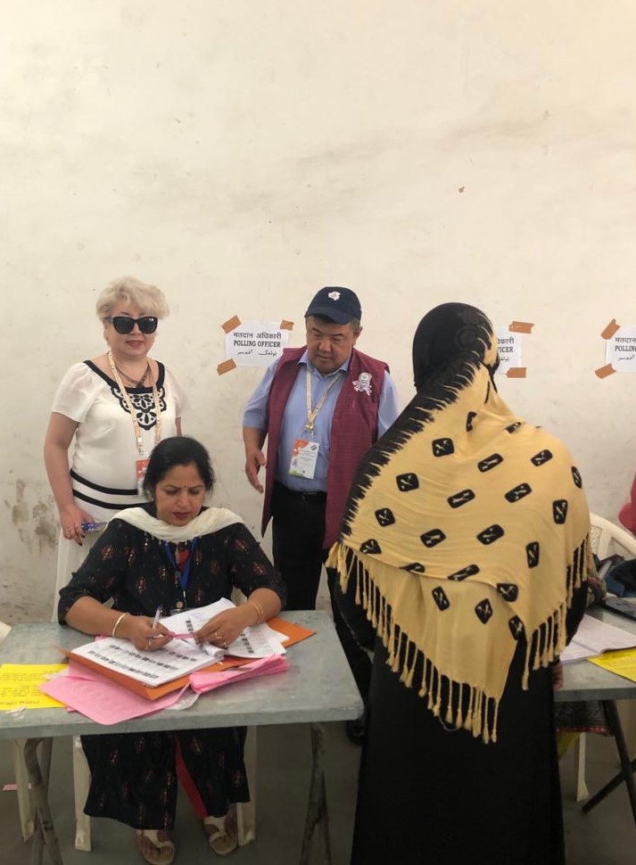 В рамках наблюдения за всеобщими выборами, А.Бекматов и Е. Джилкичиева ознакомились с работой избирательных участков. С целью повышения прозрачностии и достоверности избирательного процесса, на каждом избирательном участке всех штатов и союзных территорий используются контрольные журналы проверки подлинности избирателей (VVPAT) вместе с электронной машиной для голосования (EVM).