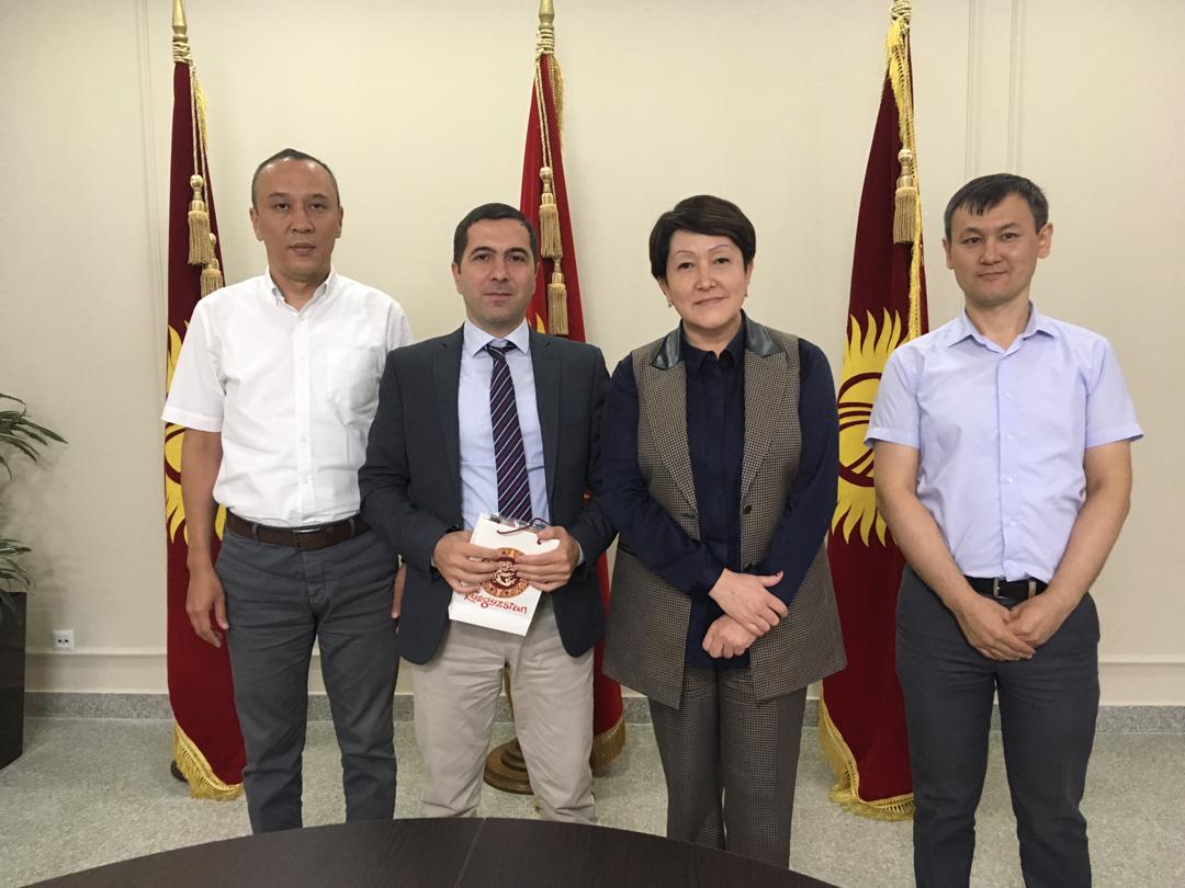 Глава ЦИК КР Н. Шайлдабекова и эксперт по оценке от ПРООН Д. Хачатрян обсудили текущее состояние имеющегося в ЦИК КР оборудования во время встречи 15 июля 2019 г. На встрече также приняли участие заведующий Отделом программно-технического обеспечения и безопасности данных А. Акимбаев и координатор проектов ПРООН У. Омуралиев.