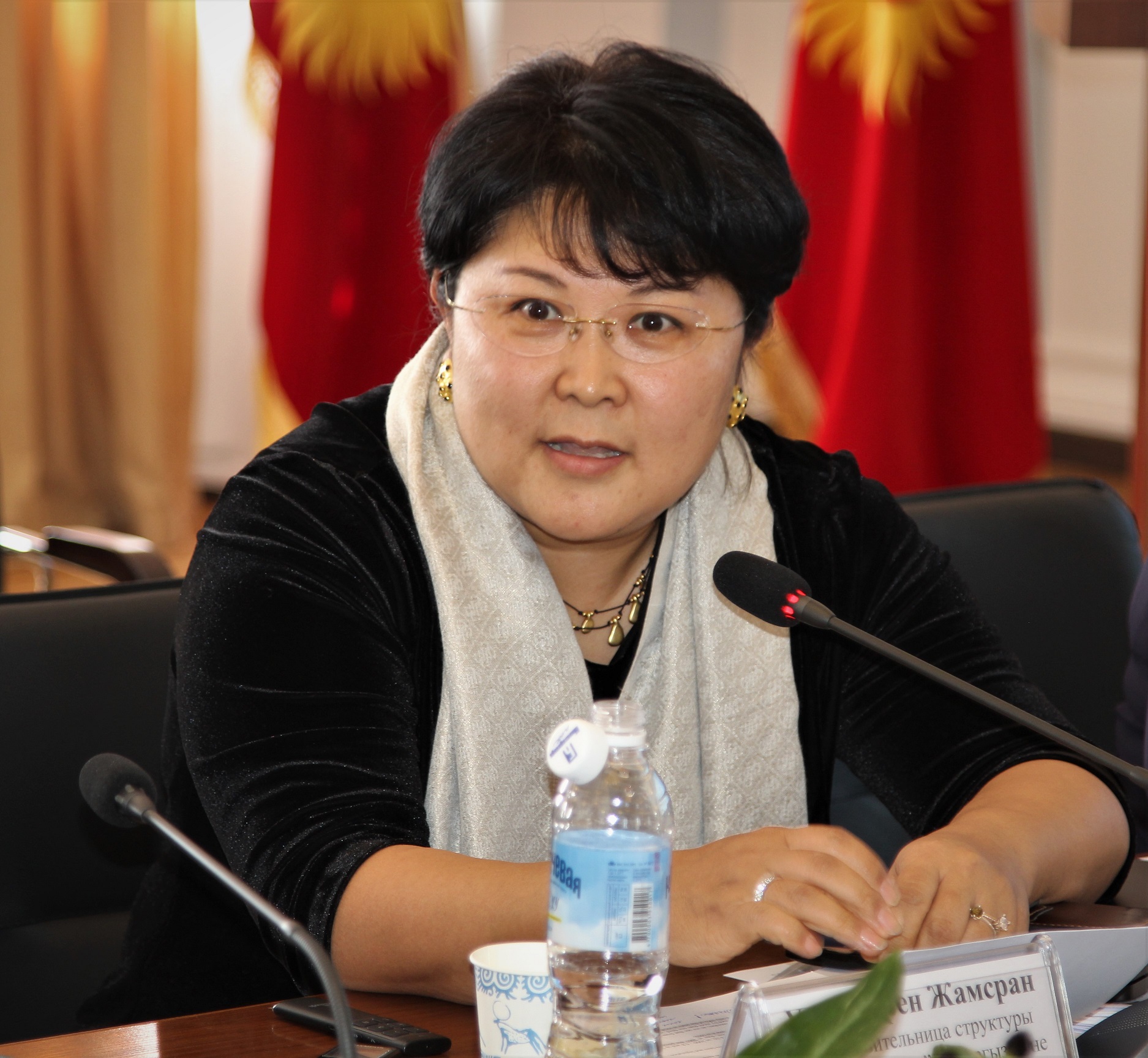В своей презентации в ходе мероприятия глава ЦИК КР, Н.Шайлдабекова, отметила низкую представленность женщин в выборных органах и среди глав выборных органов и обозначила меры, направленные на активное участие женщин в выборах и выборных органах.