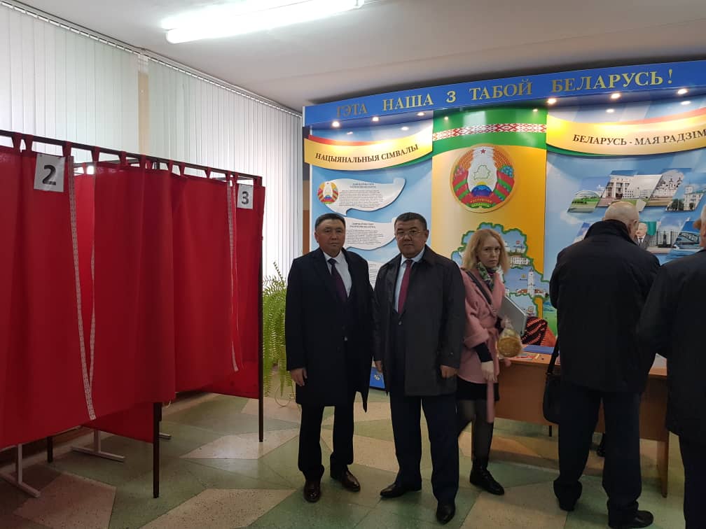 Заместитель председателя Бекматов А. Г., член ЦИК Арипов Н. Т., депутаты Жогорку Кенеша Кыргызской Республики Ормонов У. З., Баймуратов К.Ш., спецпредставители ЦИК КР в регионах, а также представитель Министерства иностранных дел КР приняли участие в досрочных выборах депутатов Палаты представителей Национального собрания Беларуси в качестве международных наблюдателей в рамках двустороннего сотрудничества, а также в составах миссий наблюдения СНГ и ШОС.