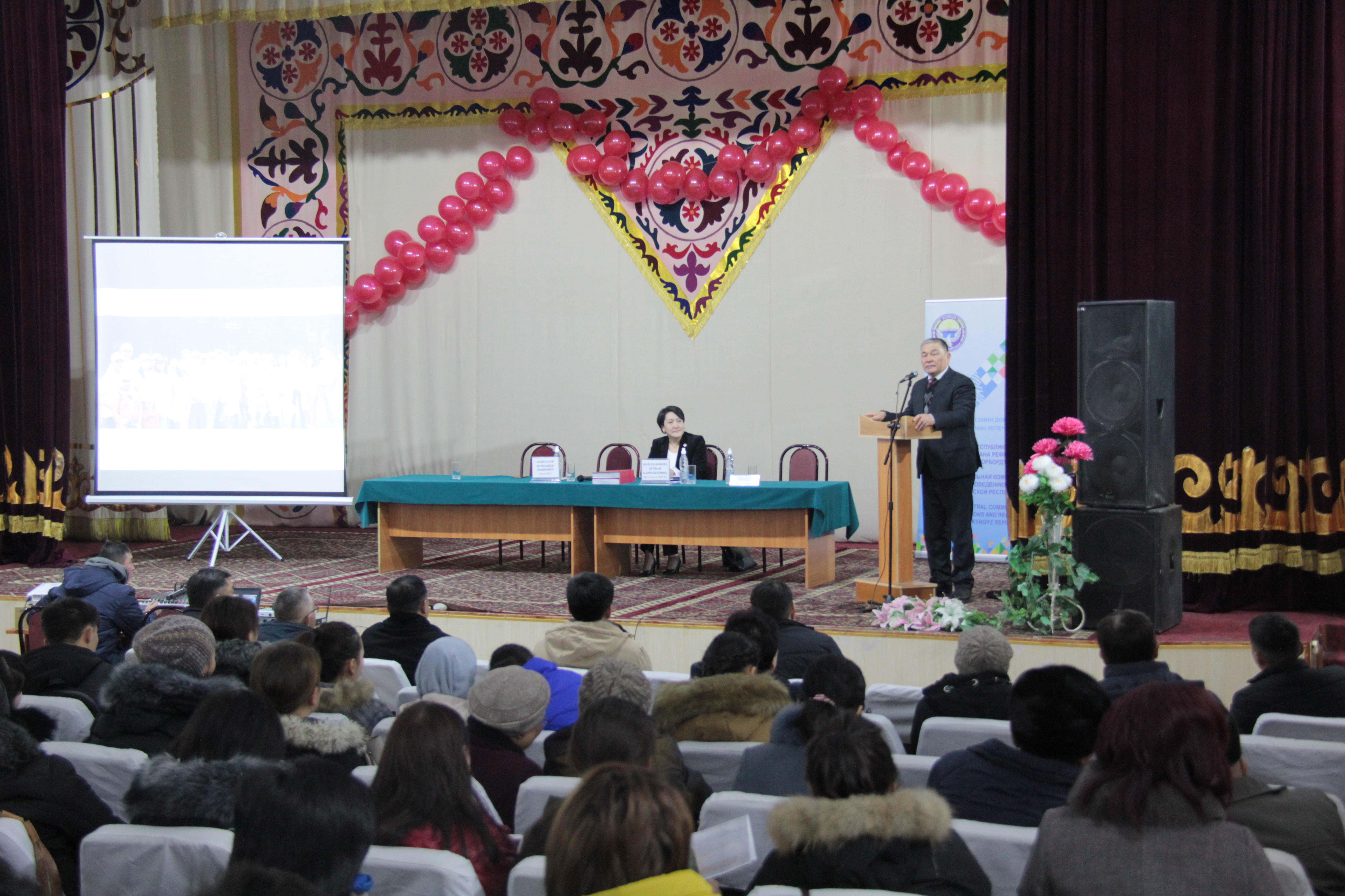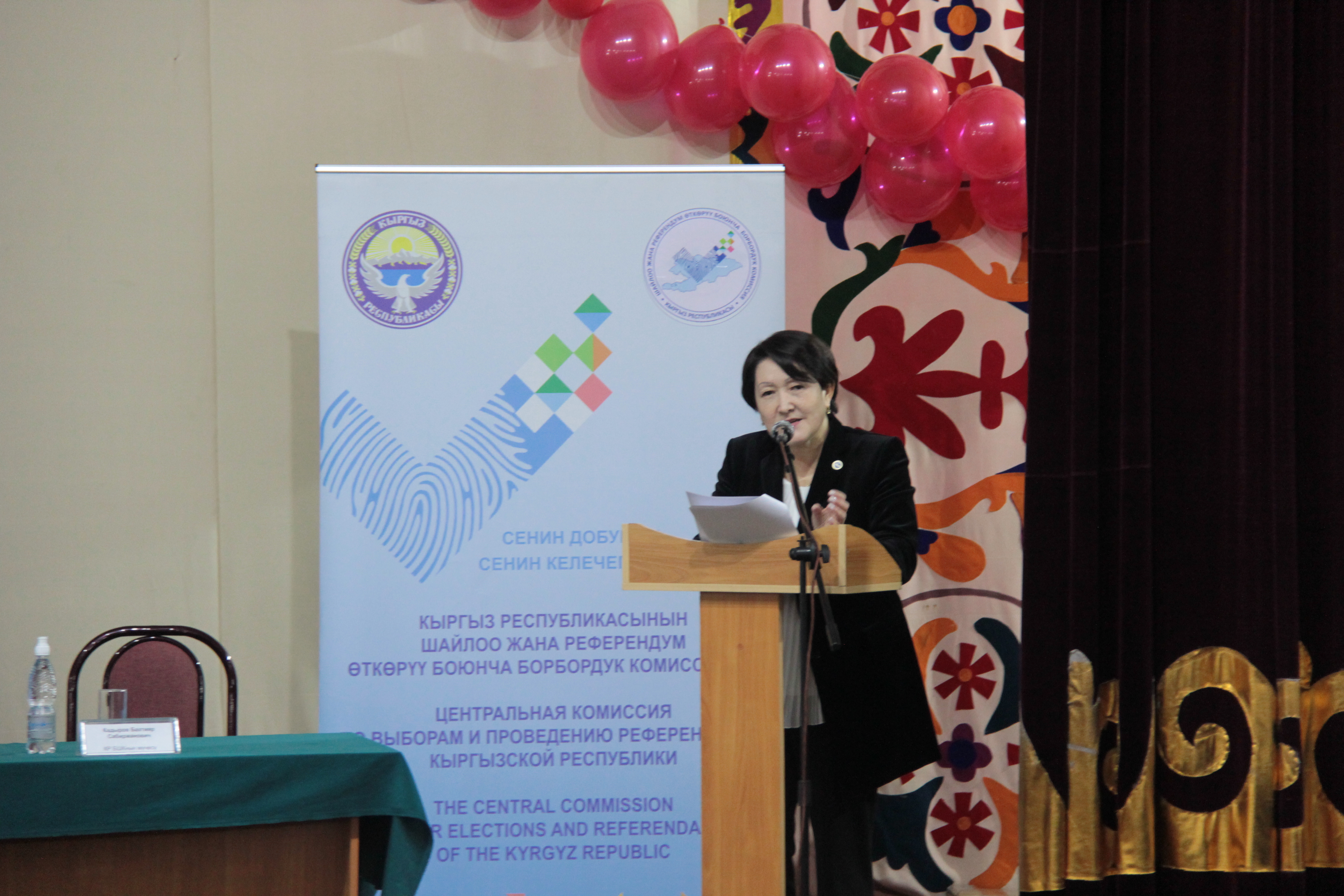 Глава ЦИК КР выступила с докладом на тему «Молодежь и выборы. Ответственность за будущее». Она рассказала студентам об избирательных правах, стандартах, особенностях избирательной системы в Кыргызстане. Эксперт Центра обучения ЦИК КР Каныбеков Урмат продемонстрировал функционирование автоматической считывающей урны для голосования.