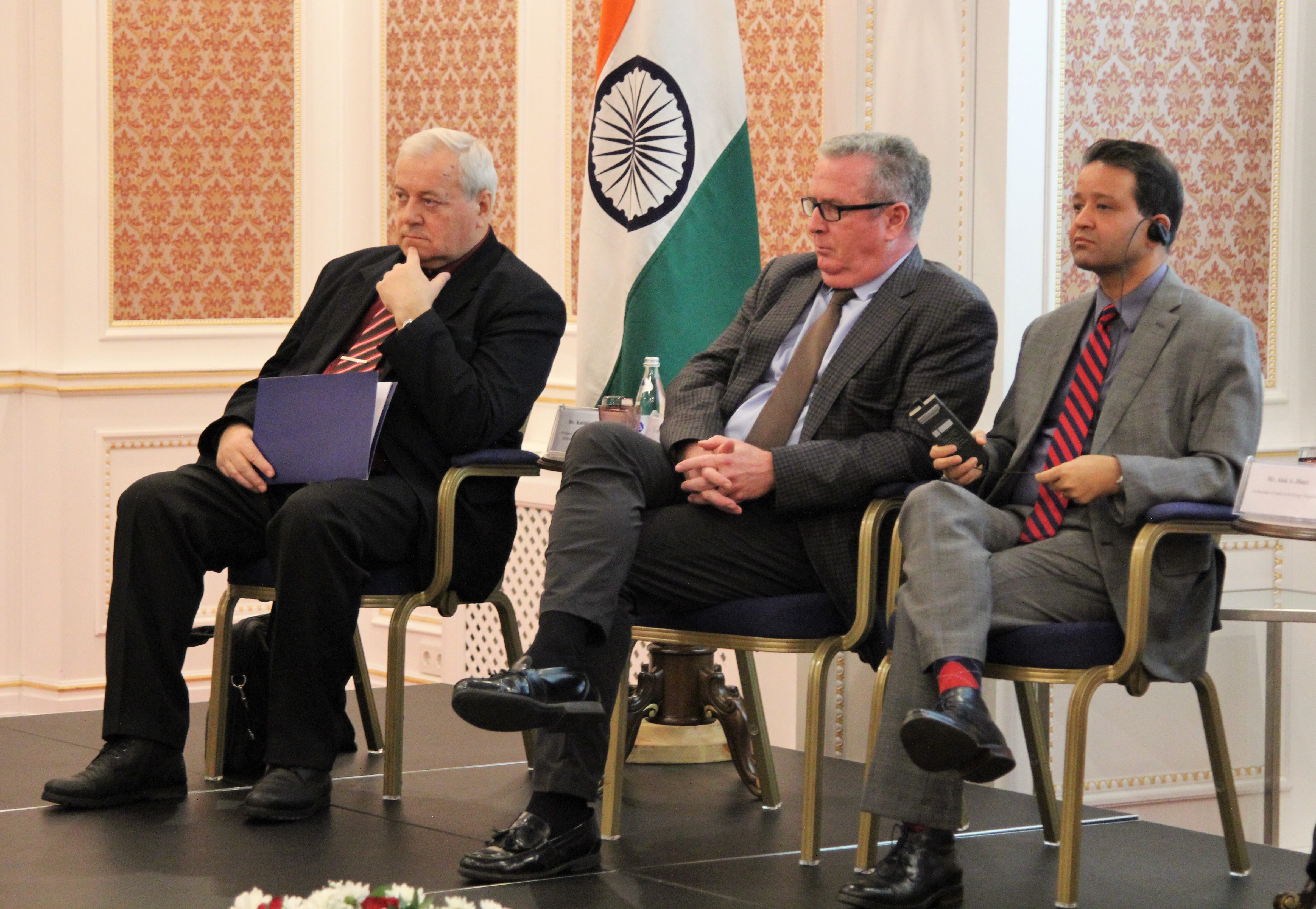 В работе симпозиума “Конституционализм и верховенство права” приняли участие директор Американского Университета Центральной Азии Андрев Кучинс, который провел политический, социально-экономический анализ стран, в своем речи он подробно остановился на вопросах формирования и развития гражданского общества. Ректор Дипломатической академии МИД КР Чинара Адамкулова сделала увлекательный обзор по двустороннему сотрудничеству между нашими странами. Чрезвычайный и Полномочный посланник Кыргызской Республики Евгений Каблуков рассказал об особенностях конституционного устройства Республики Индии, о становлении правового государства и политических процессах после Второй мировой войны. Небольшой исторический экскурс для собравшихся провёл профессора КНУ им. Ж.Баласагына Тынчтыбек Чоротегин, он рассказал о роли Индии в достижении человеческой цивилизации,