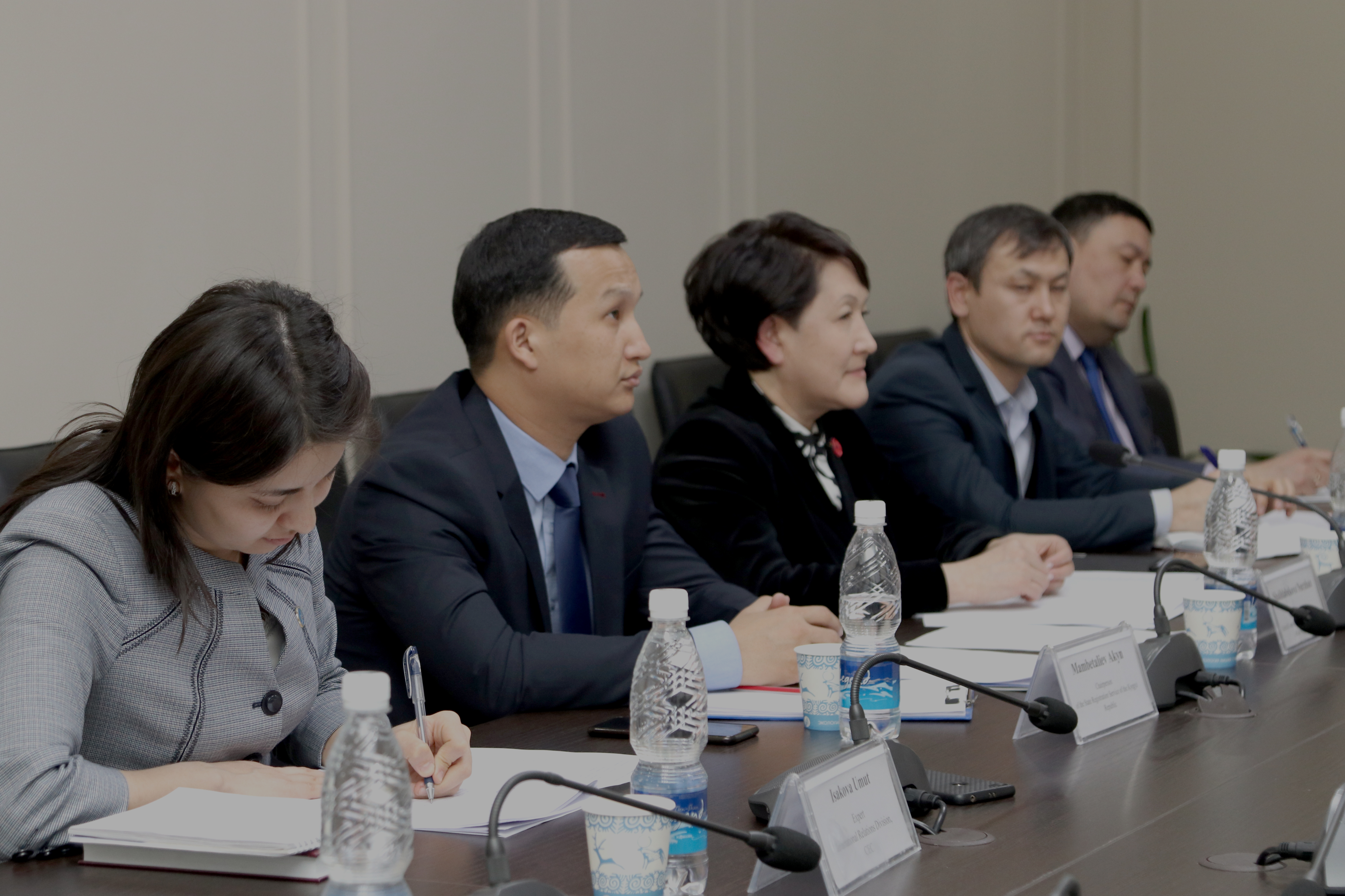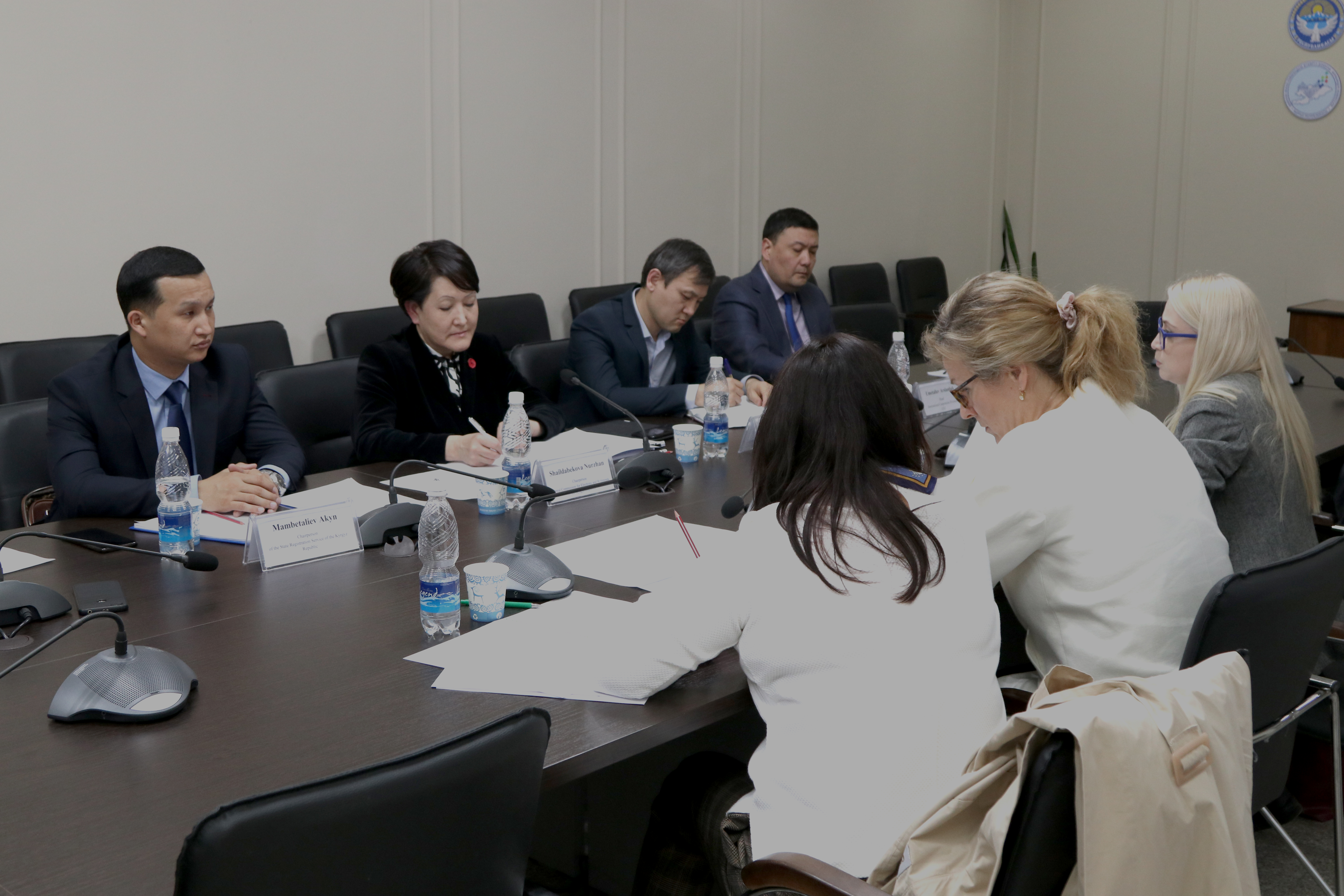 На встрече также присутствовал председатель Государственной регистрационной службы Акын Мамбеталиев.