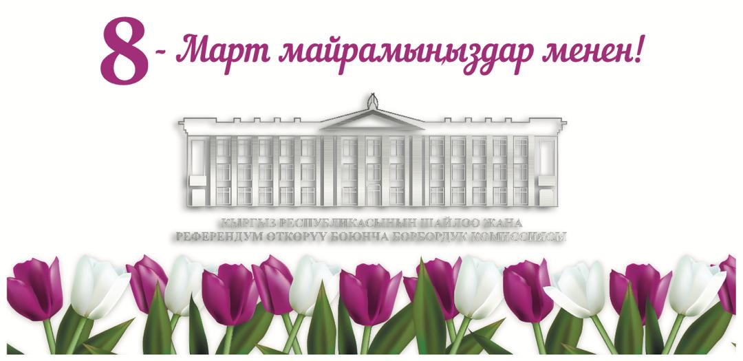 Центральная избирательная комиссия по выборам и проведению референдумов Кыргызской Республики поздравляет Вас с Международным женским днем 8 Марта!