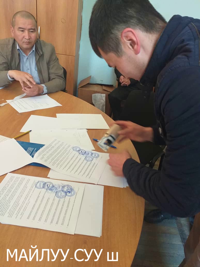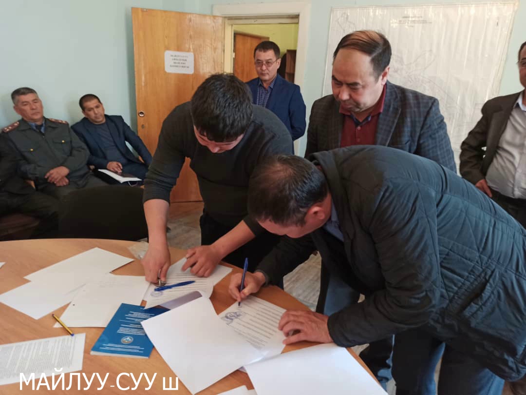 В Майлуу-Суу 19 марта 2020 года меморандум подписали 7 партий: "Мекеним Кыргызстан", "Ата-Мекен", "Замандаш", "Элмурас", "Кыргызстан", "Демократическая партия "Биримдик" (Единство)", "Онугуу-Прогресс".