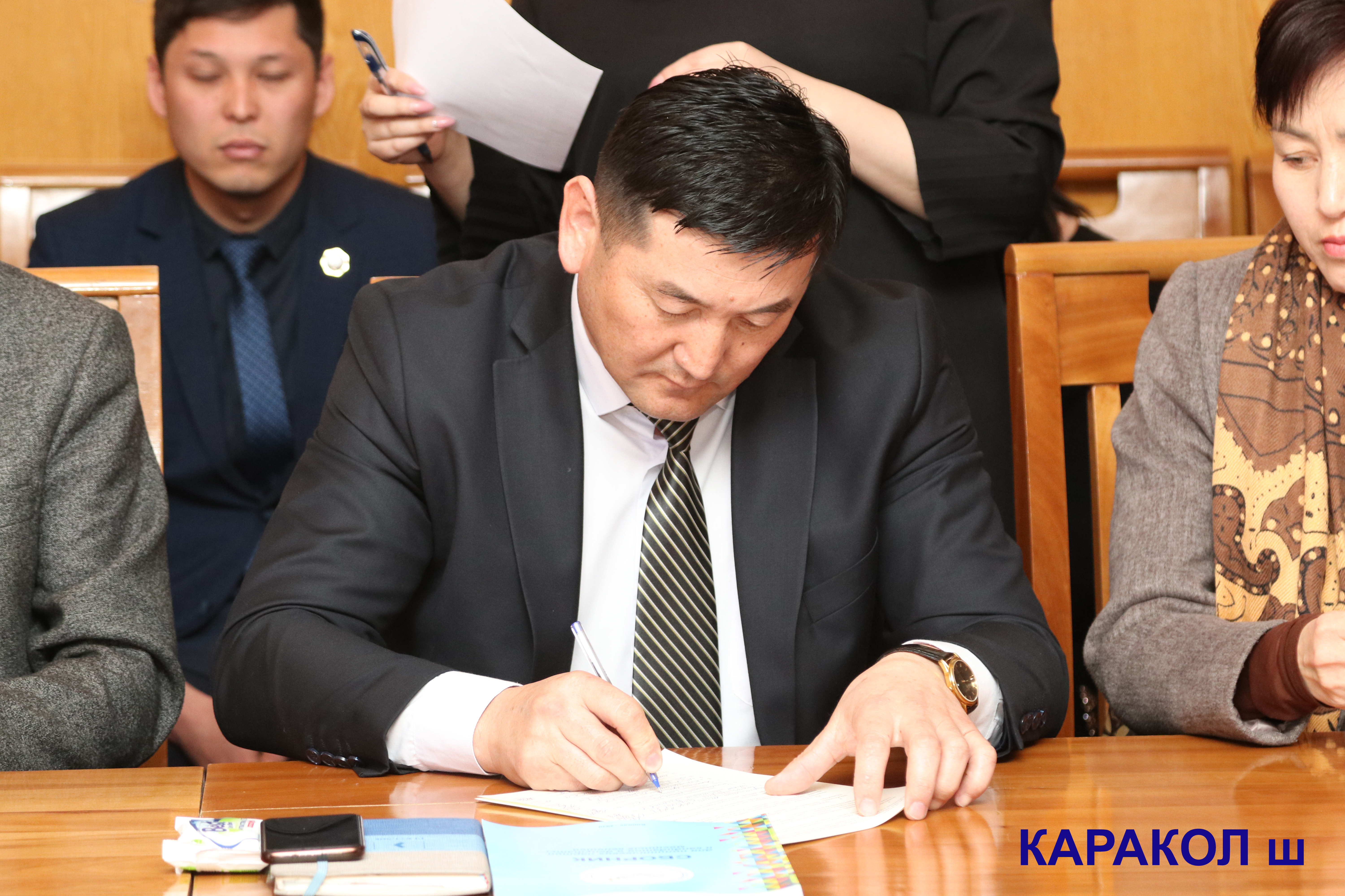 В Караколе 17 марта 2020 года меморандум подписали 14 партий: "Партия Зеленых Кыргызстана", "Онугуу-Прогресс", "Мекен Ынтымагы", "Ак Шумкар", "Улуу Кыргызстан", "КЛДП", "Демократическая партия "Биримдик" (Единство)", "Кыргызстан", "Замандаш", "Табылга", "Бирик", "Мекеним Кыргызстан", "УлууЖурт", "Республика".