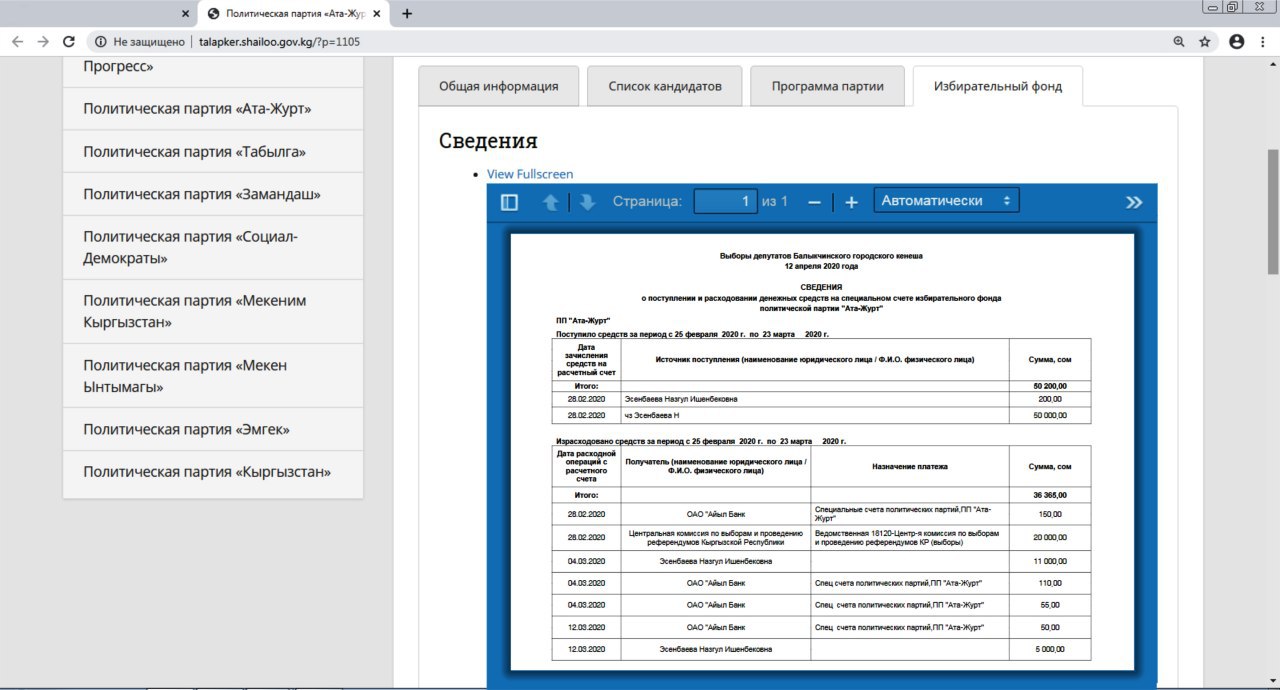 Предельная сумма расходов политической партии, выдвинувшей список кандидатов, за счет средств избирательного фонда не может превышать расчетный показатель более чем в 3 000 000 раз, что составляет 300 млн. сомов.