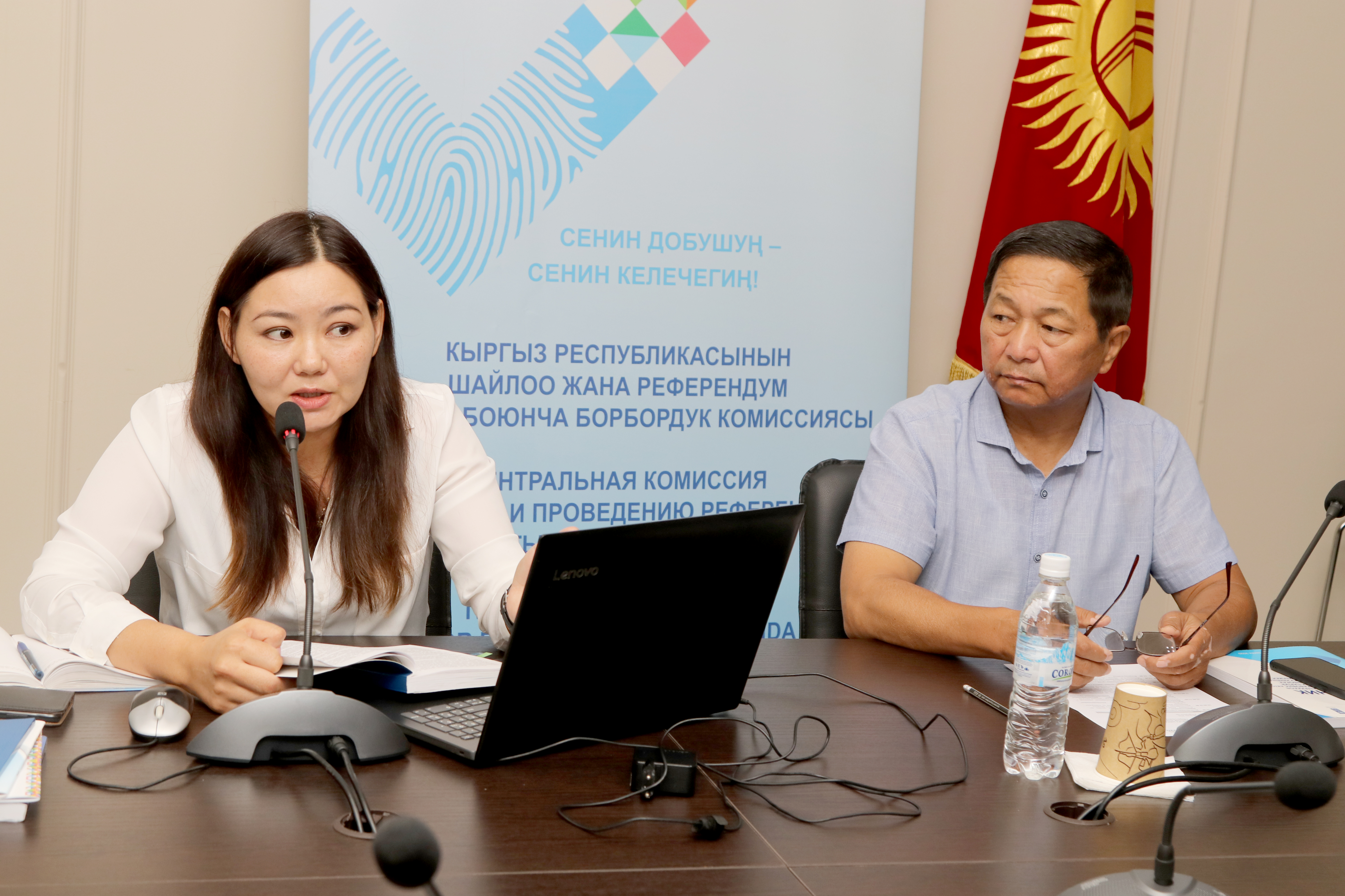 Эксперты ПРООН Мамытова Канышай и Андашева Назира ознакомили участников тренинга с процедурами рассмотрения споров избирательными комиссиями по делам, влекущим за собой конституционно-правовую (избирательную) ответственность.