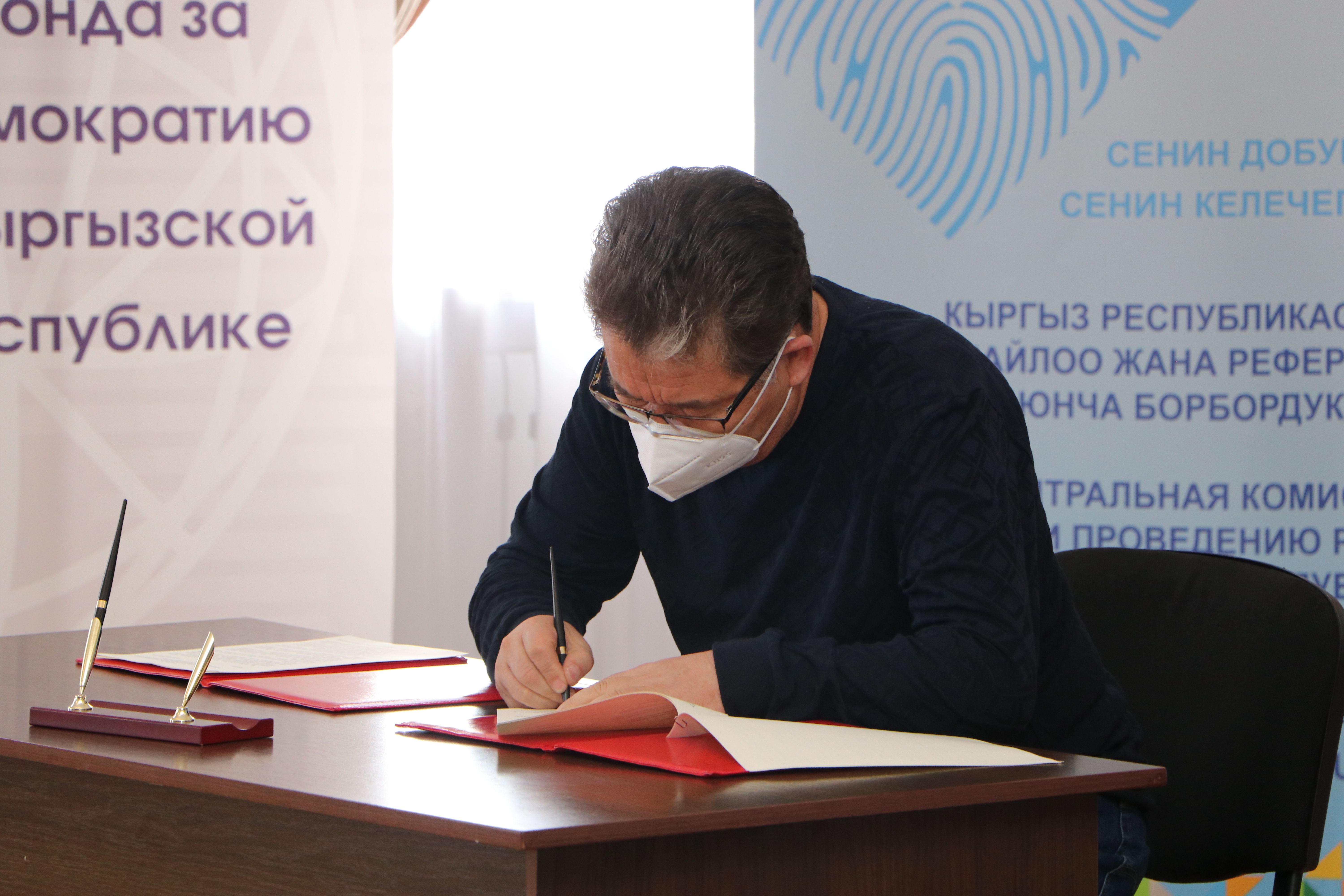 признавая, что приоритетом на выборах для всех участников должны быть интересы граждан, а поддержку людей можно заслужить только реальными делами, признавая, что достигнутые в ходе избирательной реформы достоверность и прозрачность итогов выборов являются хорошей основой для реальной конкуренции, выступаем за проведение честных и справедливых выборов в полном соответствии с Конституцией и законодательством Кыргызской Республики.