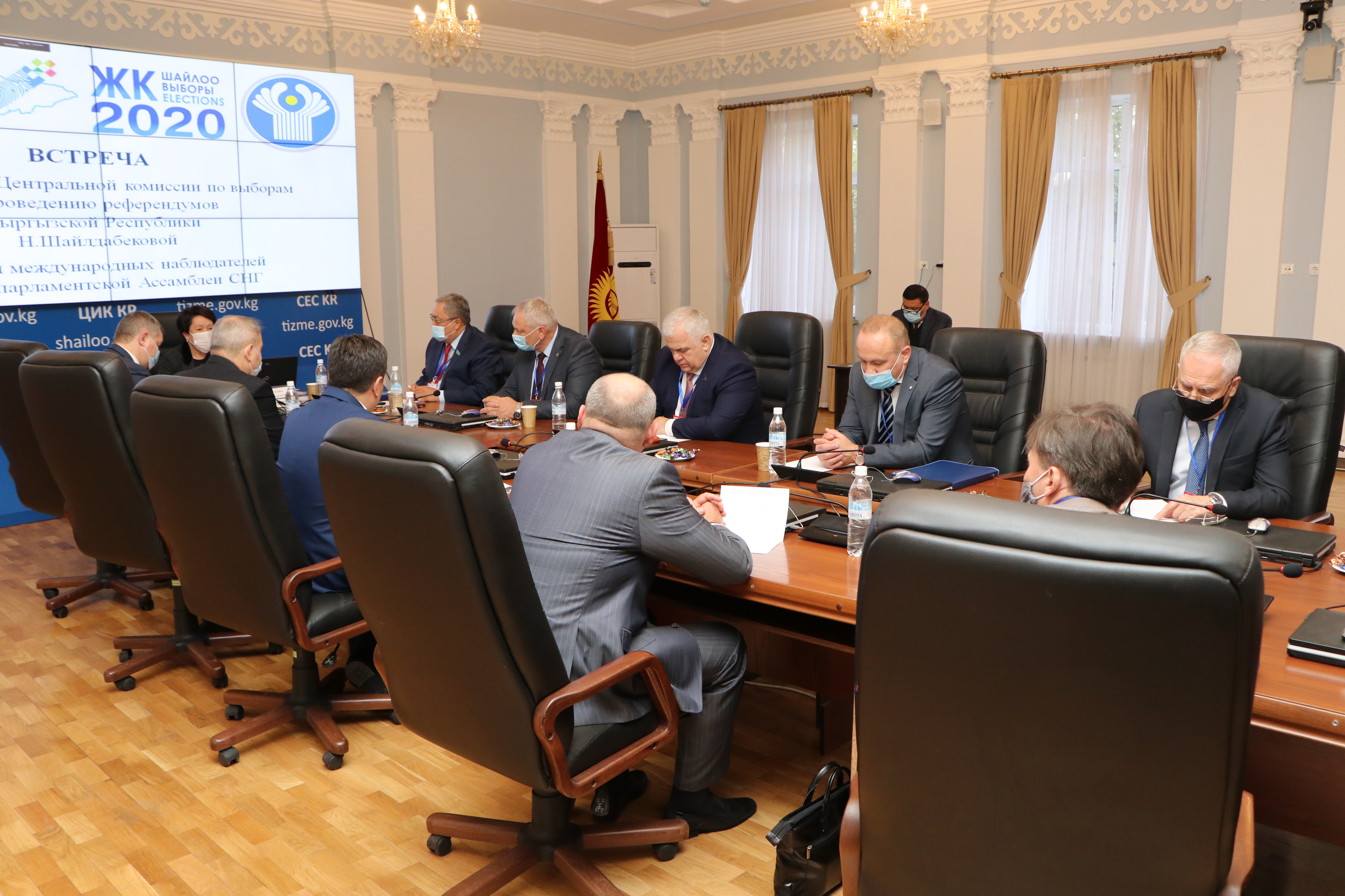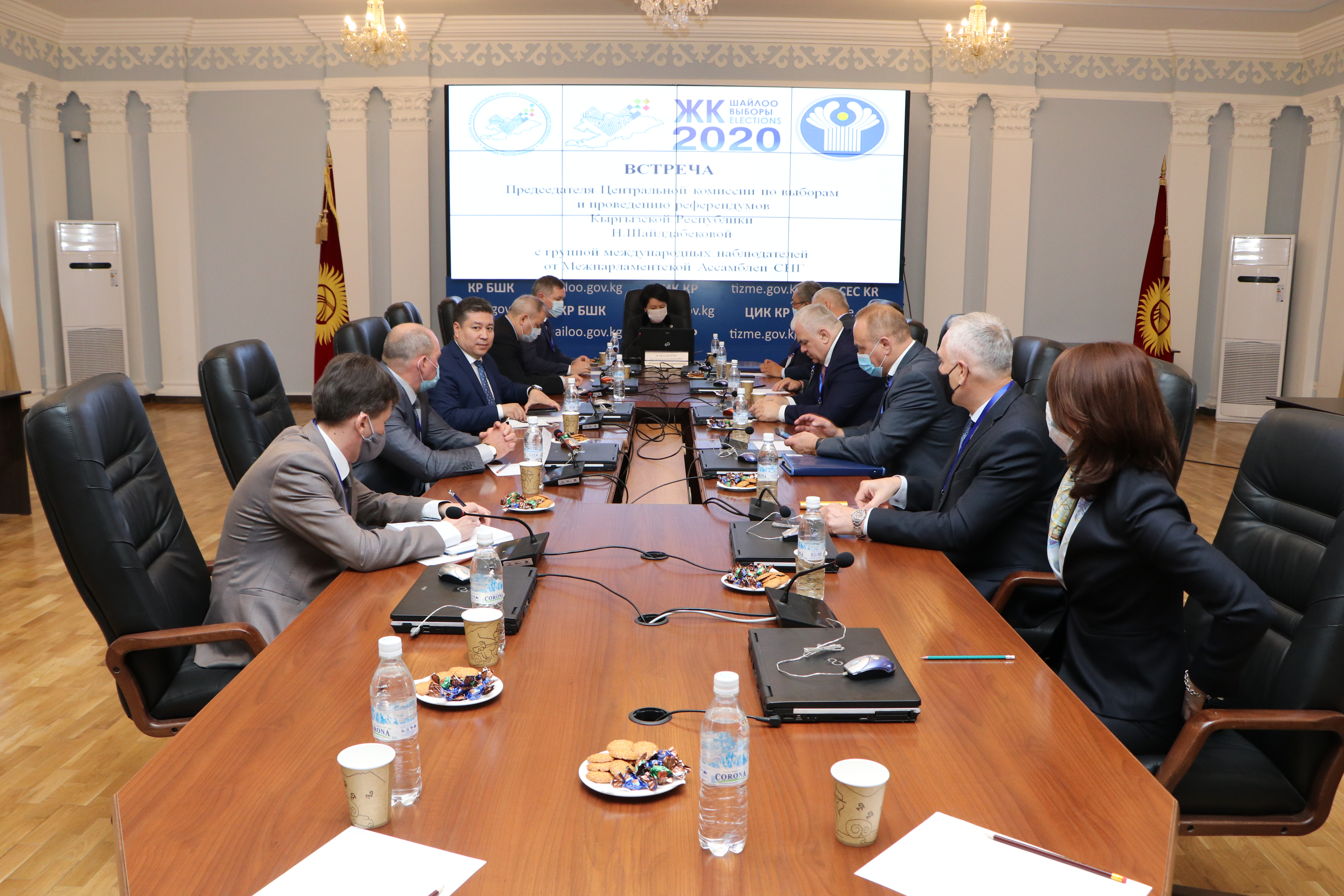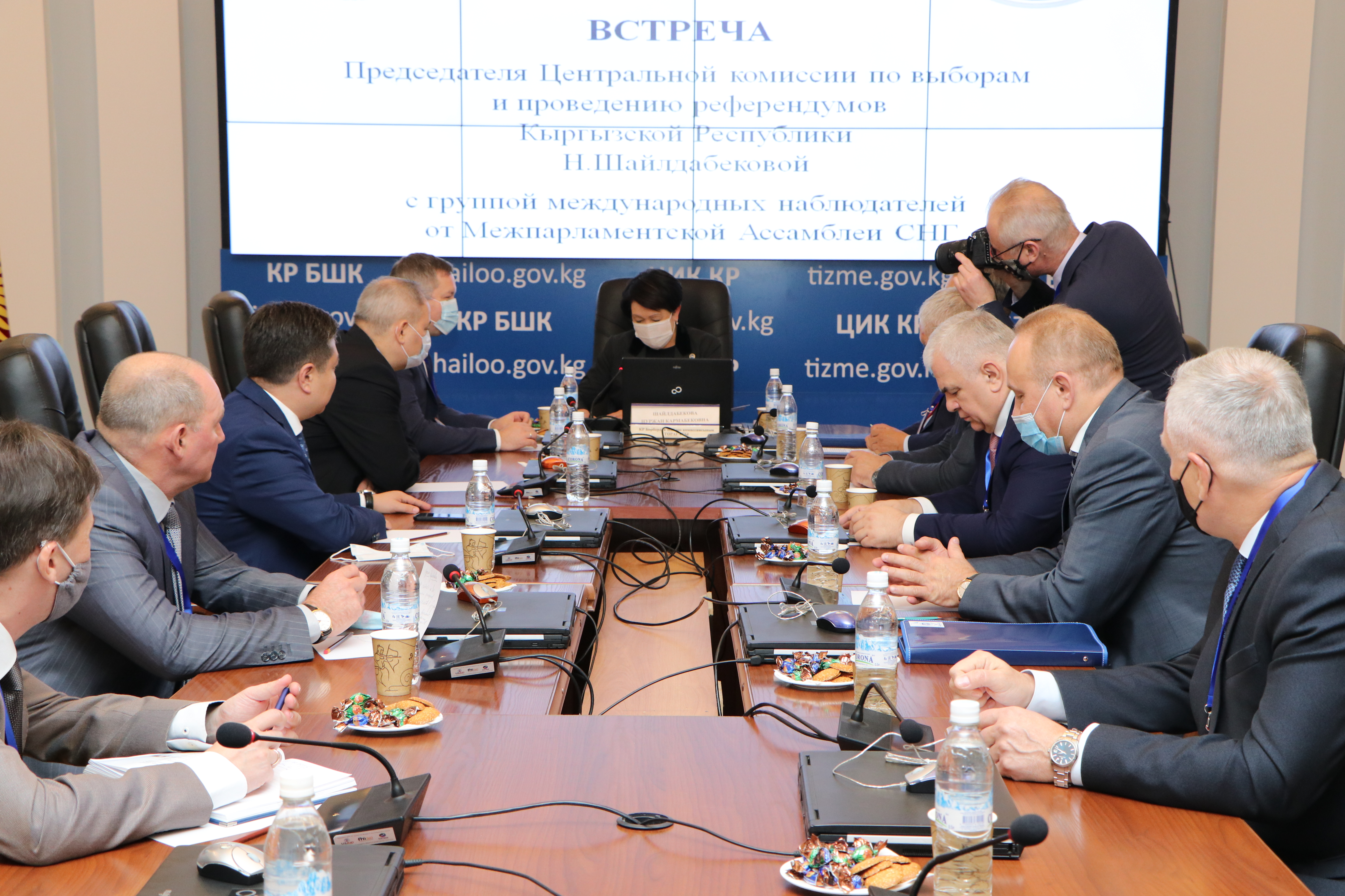 Сегодня, 2 октября 2020 года, состоялась встреча председателя Центральной комиссии по выборам и проведению референдумов Кыргызской Республики Н.Шайлдабековой с группой международных наблюдателей от МПА СНГ, миссию которых возглавляет Ерман Мухтар Тилдабекулы.