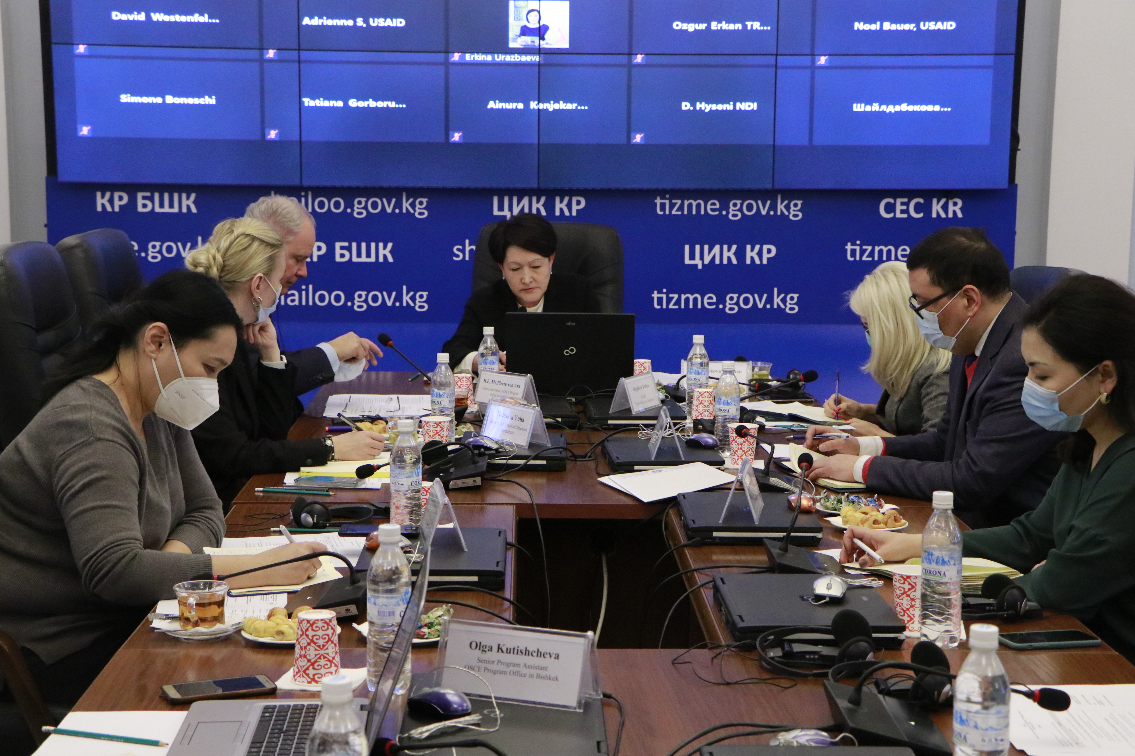 Сегодня, 9 февраля, состоялась встреча председателя Центральной комиссии по выборам и проведению референдумов Кыргызской Республики Нуржан Шайлдабековой с представителями международных организаций по обсуждению вопросов, связанных с подготовкой и проведением выборов в местные кенеши Кыргызской Республики, назначенных на 11 апреля 2021 года.