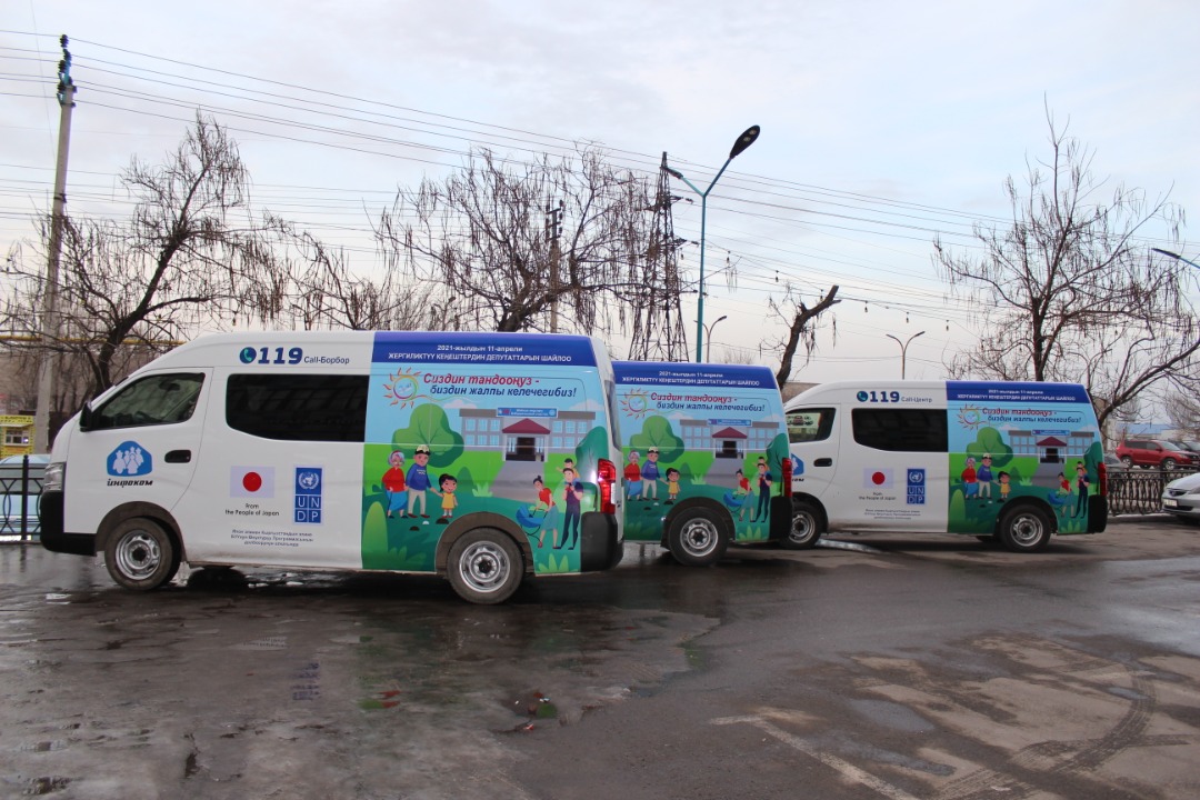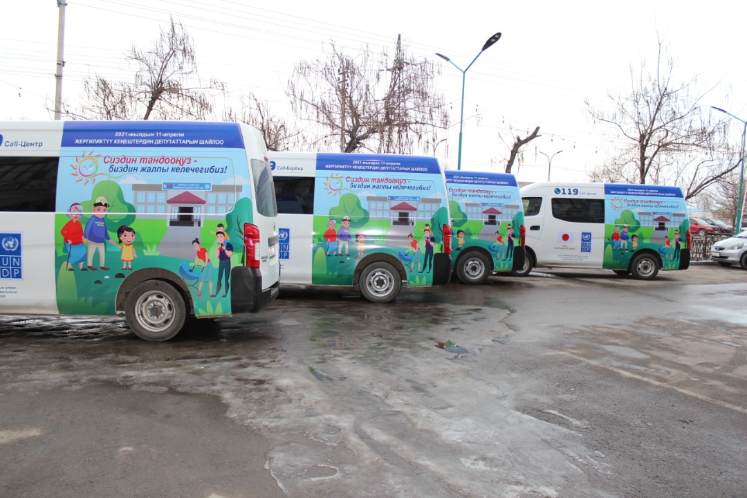 Данные автобусы организованы Центральной комиссией по выборам и проведению референдумов и Государственной регистрационной службой Кыргызской Республики при поддержке ПРООН.