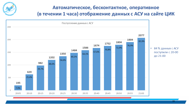После оглашения итогов голосования протокол об итогах голосования, первичные, итоговые чеки об идентификации избирателей и автоматически считывающих урн, заверенные печатью участковой избирательной комиссии, направляются на центральный сервер Центральной избирательной комиссии путем сканирования через автоматически считывающие урны. Передача данных по завершении голосования (после подключения к сети) осуществляется бесконтактно в автоматическом режиме, все отчеты публикуются на портале protocol.shailoo.gov.kg.