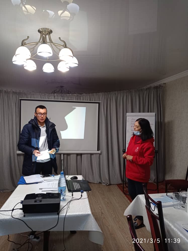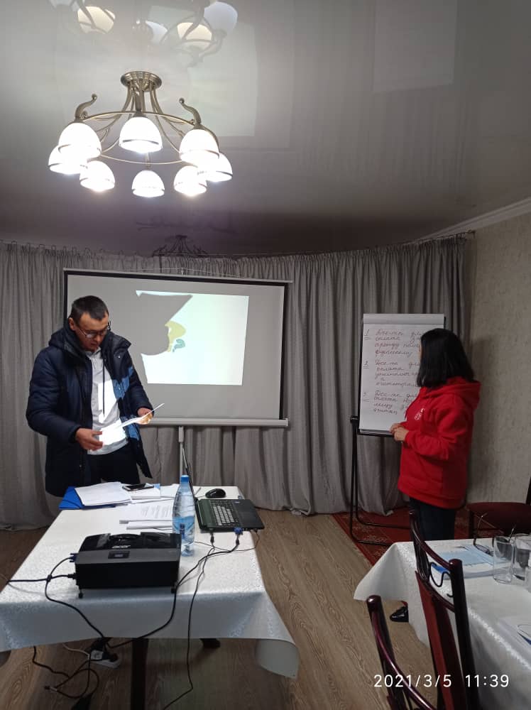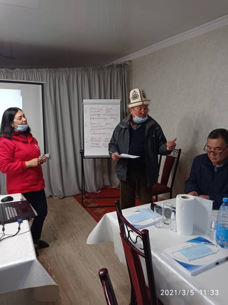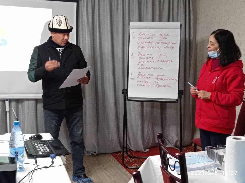 На тренинге было рассказано о правилах агитации, в частности о том,ч то Кандидаты и политические партии не позднее 5 календарных дней со дня регистрации кандидата, списков кандидатов в соответствующей избирательной комиссии представляют программу в соответствующую избирательную комиссию. Центральная избирательная комиссия публикует программу кандидатов, политических партий на официальном сайте - https://talapker.shailoo.gov.kg/.