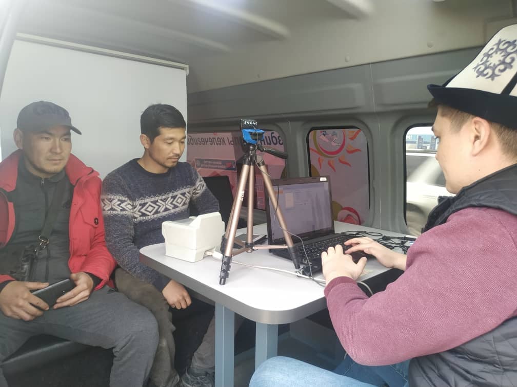 Центральная комиссия по выборам и проведению референдумов Кыргызской Республики совместно с Государственной регистрационной службой при поддержке ПРООН в КР предоставляют гражданам услуги по прохождению биометрической регистрации с помощью специальных информационных автобусов.