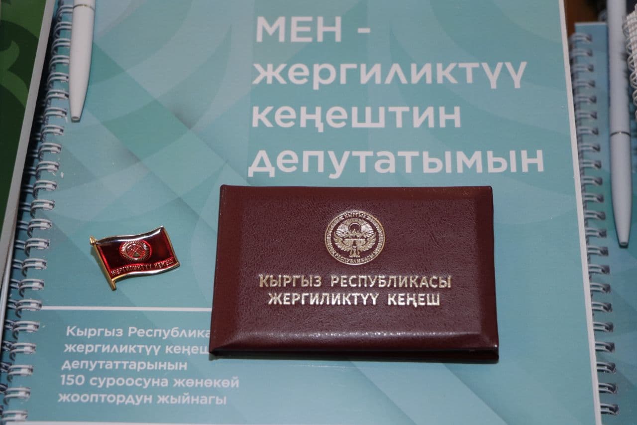В ходе заседания депутаты получили мандаты и нагрудные значки. Отличительные знаки вручила председатель Центральной комиссии по выборам и проведению референдумов КР Н. Шайлдабекова. Кроме того, народные избранники в качестве подарков получили периодические издания: «Законы о местном самоуправлении», «О выборах депутатов в местные кенеши» и сборник практических советов «Я – депутат местного кенеша».