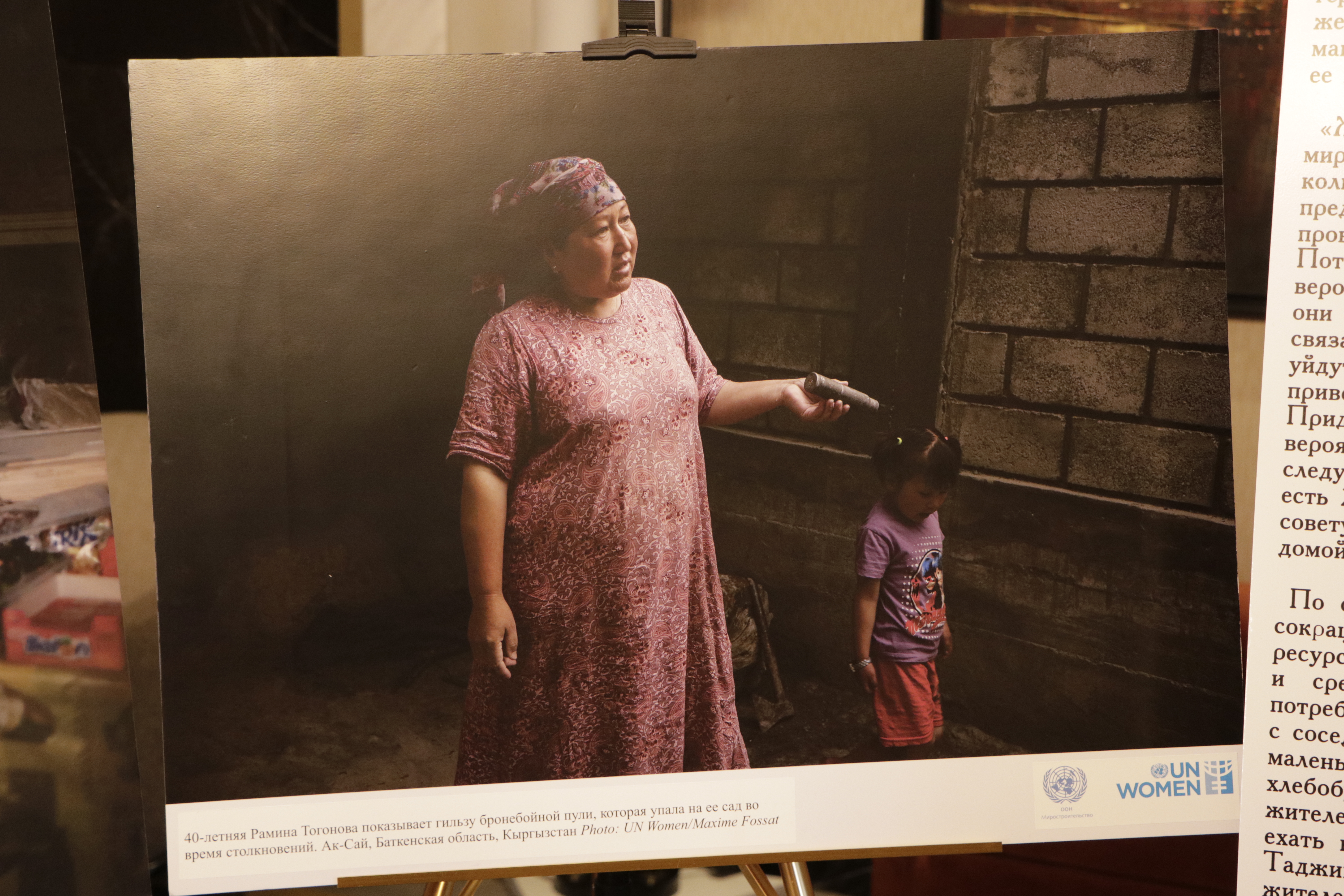 Также для участников и гостей церемонии чествования женщин-депутатов “Я женщина-лидер: Прорыв в новую эпоху” состоялось открытие выставки фотографий и картин женщин-лидеров из приграничных районов южной части Кыргызстана. Истории проиллюстрировали важность роли женщин в урегулировании конфликтов и восстановления сообществ, помимо общепризнанного вклада женщин в решение различных вопросов в области образования, здравоохранения и социального развития местных сообществ.