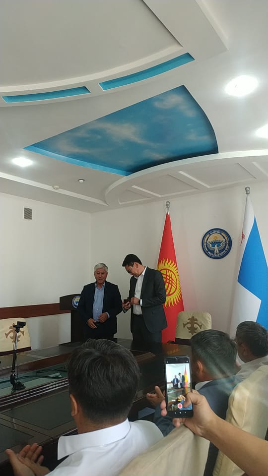 1 сентября 2021 года У. Аттокуров председатель Ошской ТИК вручил удостоверение мэру города Ош Мамбетову Алмазу Ишенбековичу.