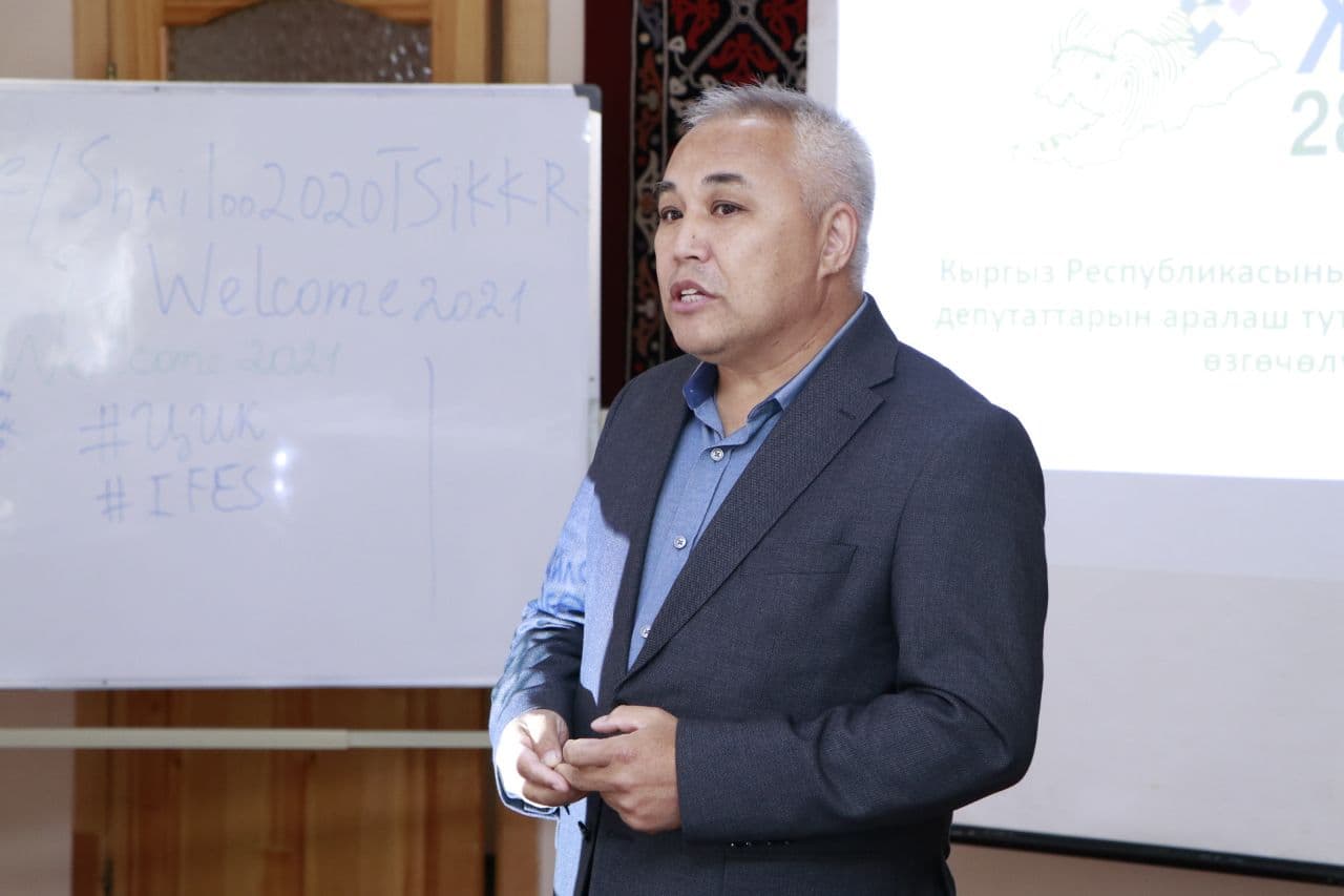 Председатель ЦИК КР Н.Шайлдабекова ознакомила участников с новой смешанной избирательной системой, изменениями выборного законодательства. Она отметила, что проведенная реформа избирательной системы Кыргызской Республики позволила достичь прозрачности выборного процесса на всех этапах, начиная с формирования списков избирателей. Так, ЦИК КР разработала постоянно доступный информационный ресурс “Тизме” https://tizme.gov.kg/home.xhtml, предназначенный для открытости, доступности, повышения информированности избирателей сведениями о себе. Обновление списка избирателей производится: в межвыборный период – ежемесячно, на выборах – ежедневно.