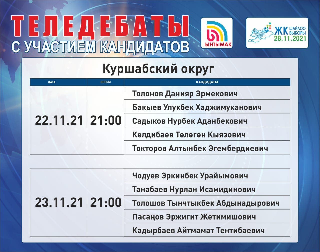 Согласно конституционному Закону “О выборах Президента Кыргызской Республики и депутатов Жогорку Кенеша Кыргызской Республики”: